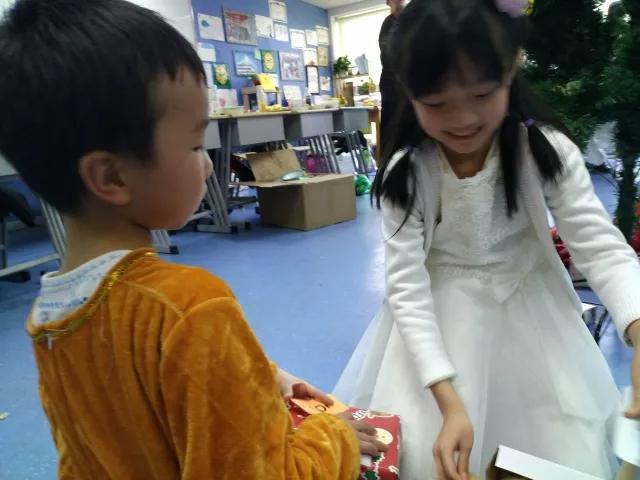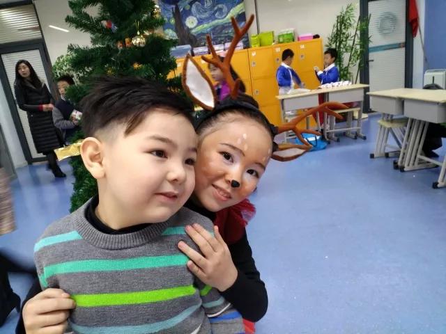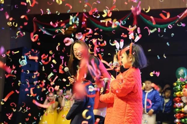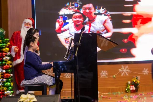 09:00 圣诞钟声敲响, 一年级家长Echo 携双胞胎女儿及在金苹果幼儿园读书的儿子走上舞台,在三个萌娃稚嫩的宣布下, Christmas party begins!