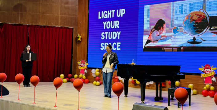 在此,还要特别感谢 Eva Yihua Zhang 同学。她毕业于金苹果学校,毕业后返回母校,积极参与本场讲座的部分翻译工作以及活动互动环节。