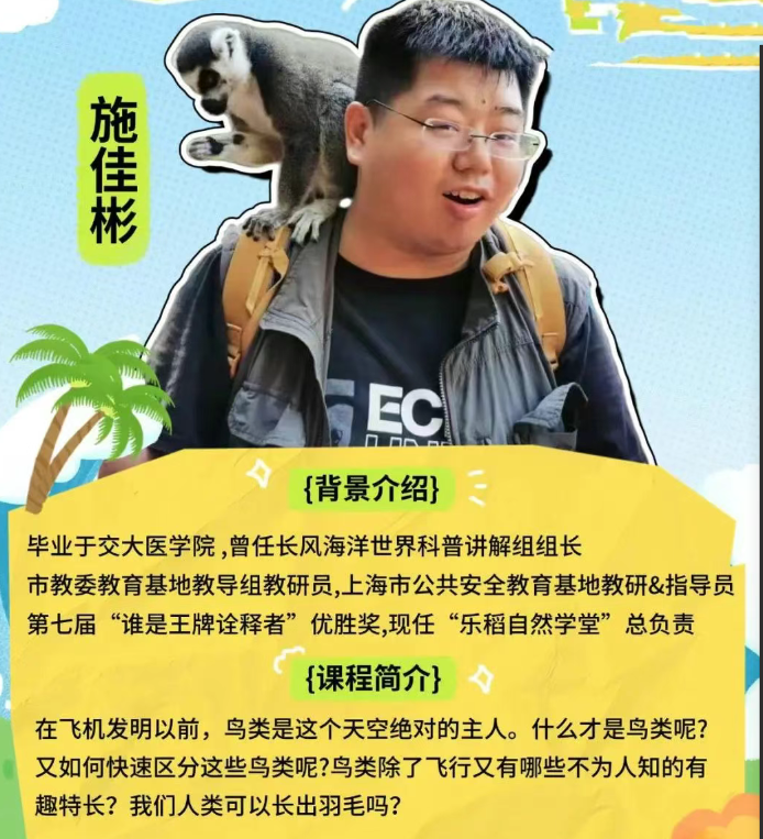 施老师履历堪称耀眼。毕业于交大医学院的他,曾任长风海洋世界科普讲解组组长,担任过市教委教育基地教导组教研员。