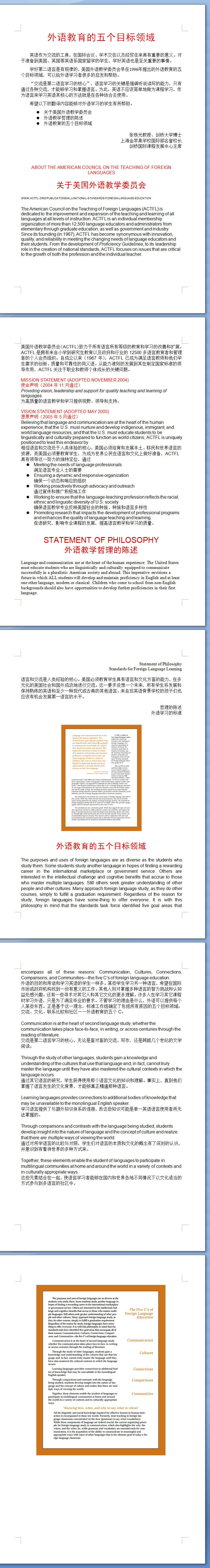 美国外语教育的五个目标领域