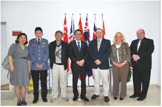 江国法校长、张道华教授和卡森隆军事中学校长皮尔森一行合影