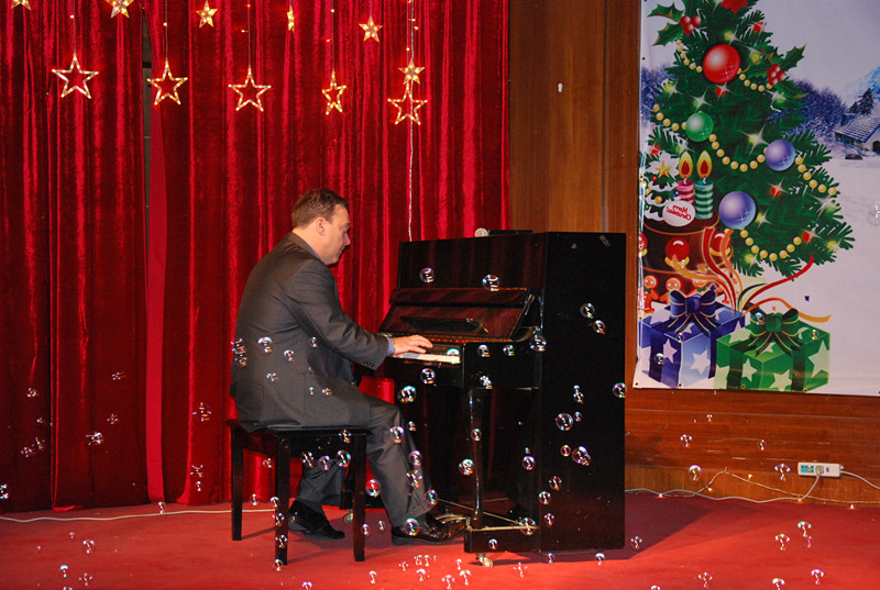 今年的圣诞晚会主题是白色圣诞,因此整个晚会会场,被装饰的如梦如幻,就好像一个圣洁的童话世界。不知道节目的安排是不是有意要和这个主题融合的,反正我觉得这样的节目安排很好,比如:外教钢琴演奏《under the Ocean》、高一二 白雪公主、普高高一(2)班章傲涵《我像雪花天上来》和高二美 歌曲《雪人》。特别是外教的钢琴演奏,虽然我不懂钢琴,但是在听的过程当中,我有一种心静止的感觉,感觉到一种久违的宁静。那种静是直入骨髓的,说不出的舒畅。