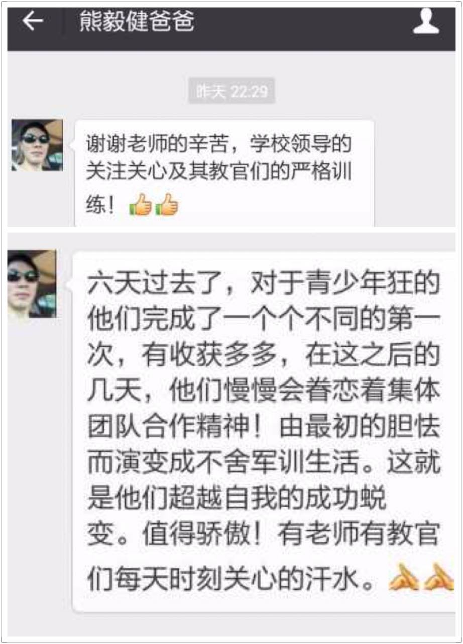通过七天的艰苦军训,同学们收益良多。家长也和军训基地连成一片,反响剧烈,很多家长忍不住发出了内心的感触和激动之情。