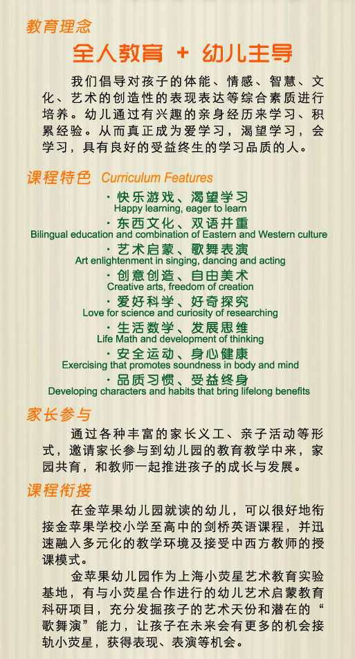 上海金苹果双语学校附属幼儿园2018年招生简章