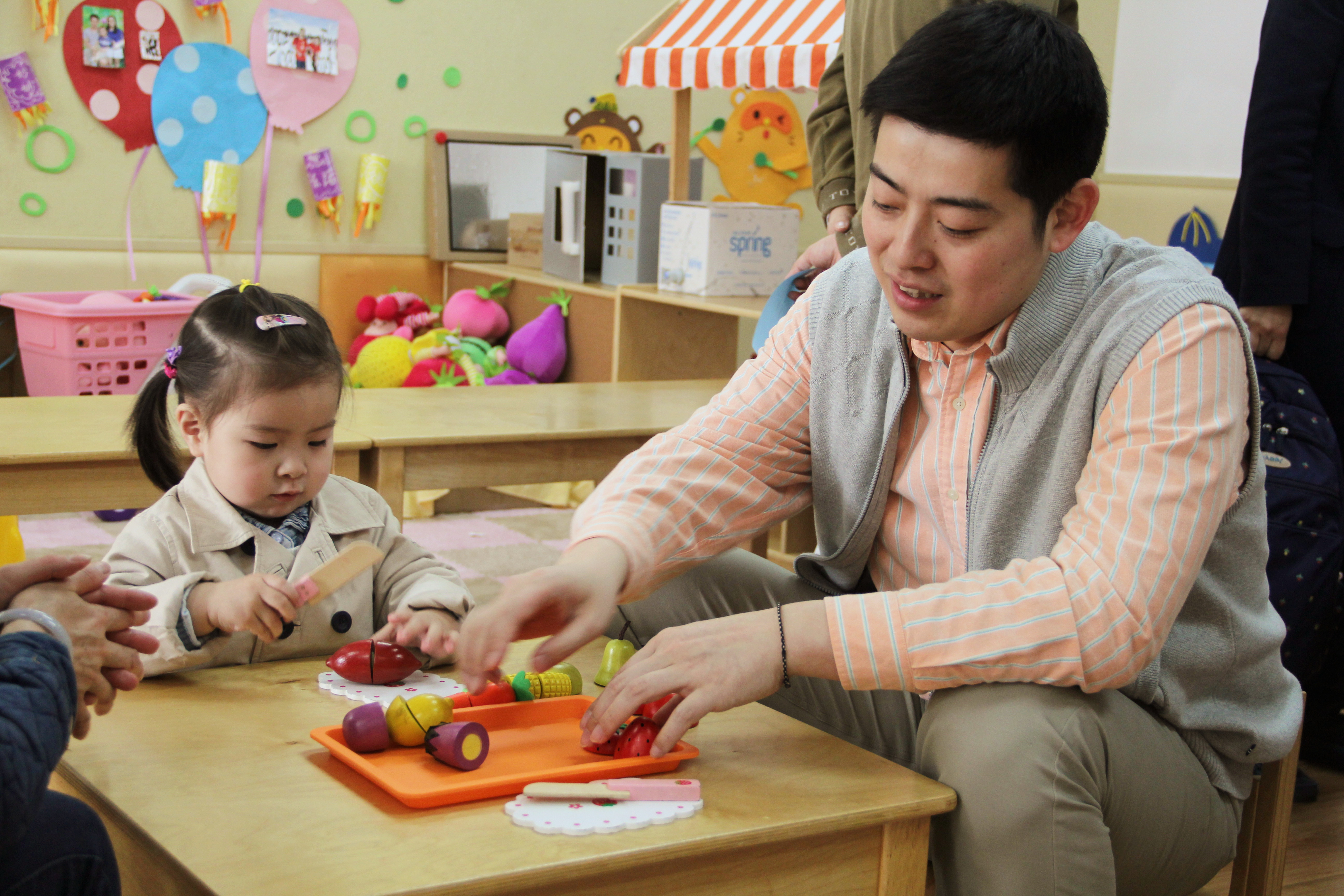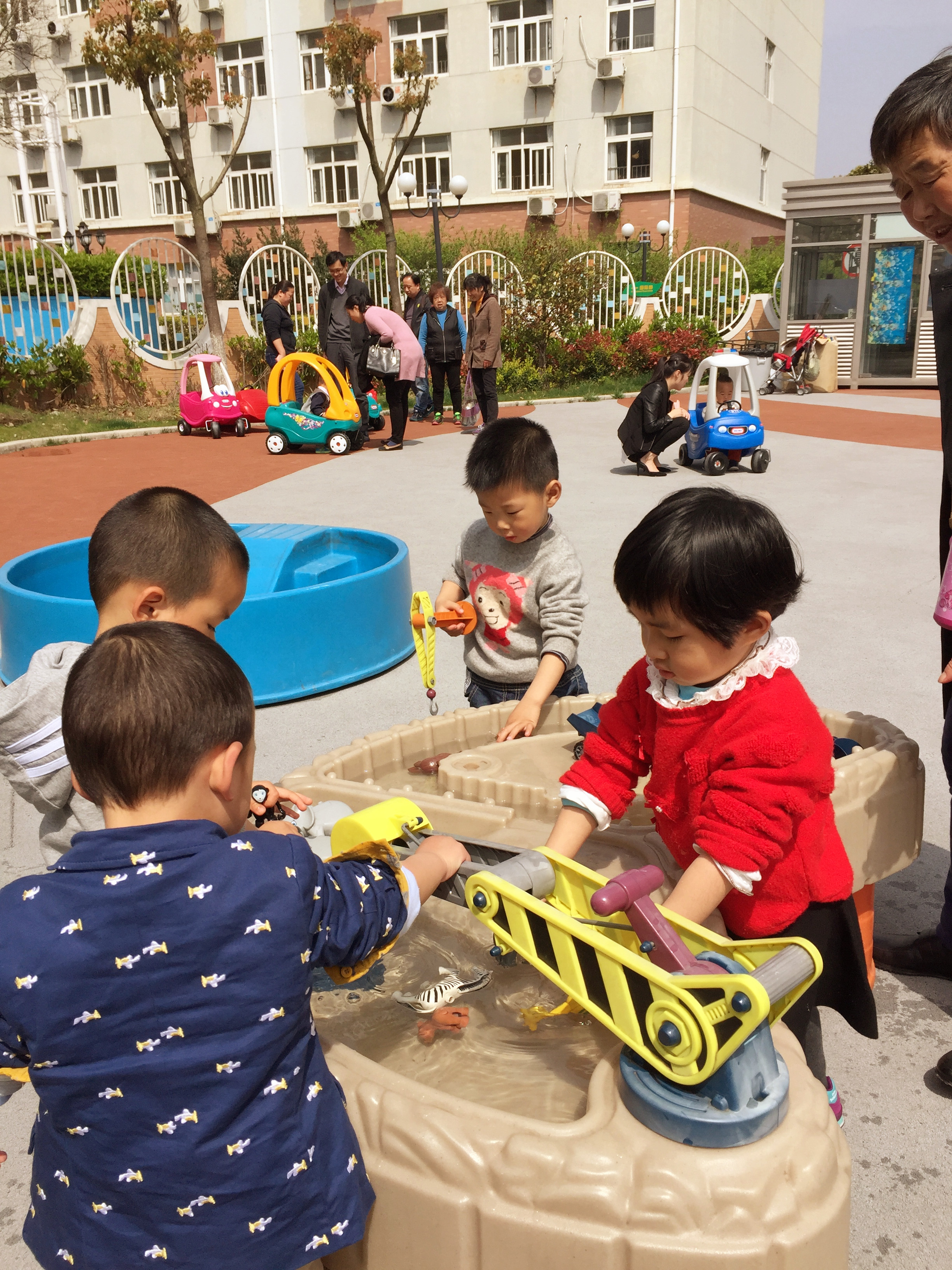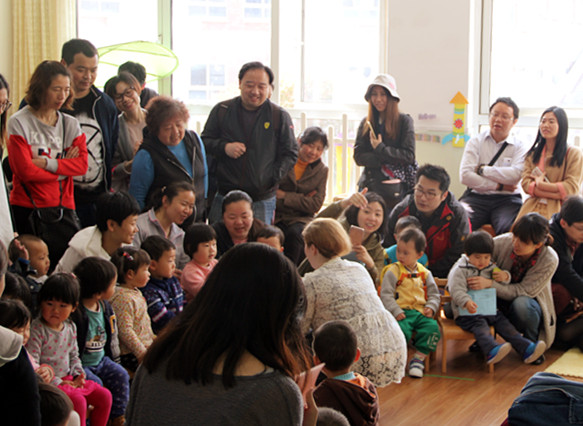 短短的半日活动,充分的呈现了各式各样感知和感官活动,爸爸妈妈带着宝贝们,快来看看有哪些好玩的呢?切切乐、捡蛋蛋、爬爬乐、桃花贴贴、扭扭草裙舞、小小建筑师……户外运动场上摆放着各种小车等运动器材和大型器械,更别错过外教老师们精采的英语课程学习和游戏体验。在此过程中,孩子们快乐低活动和游戏,家长感受着金苹果幼儿园的中外教师们如何与孩子沟通和互动、如何引导孩子进入学习状态、如何带领孩子与同伴们展开各类运动、律动和游戏……。