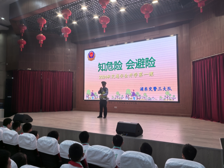 9月3日,浦东交警三大队警官走进我校,为预备年级的同学们送来了开学安全第一课。