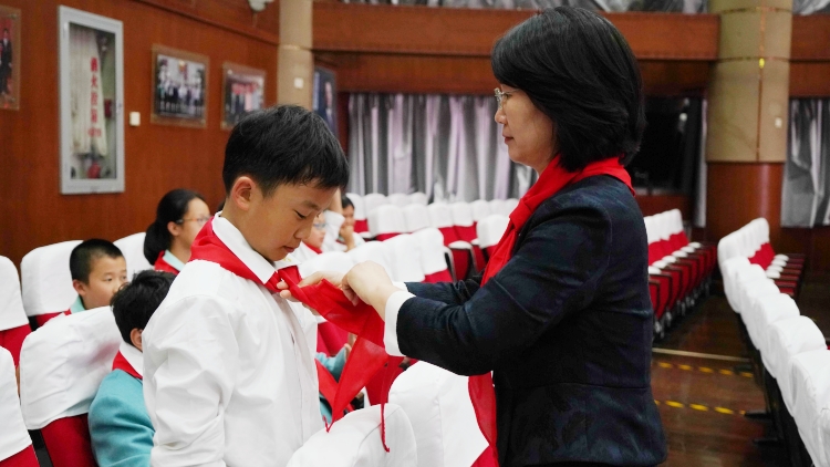 少先队员们轻轻解下陪伴多年的小号红领巾,折叠整齐后小心翼翼地放进口袋中,珍藏这一份美好的回忆。接着,各中队代表从大队辅导员手中接过大号红领巾,分发给队员们。大家郑重地将大号红领巾戴在胸前,这一刻,红领巾不仅代表着成长,更象征着责任与担当。
