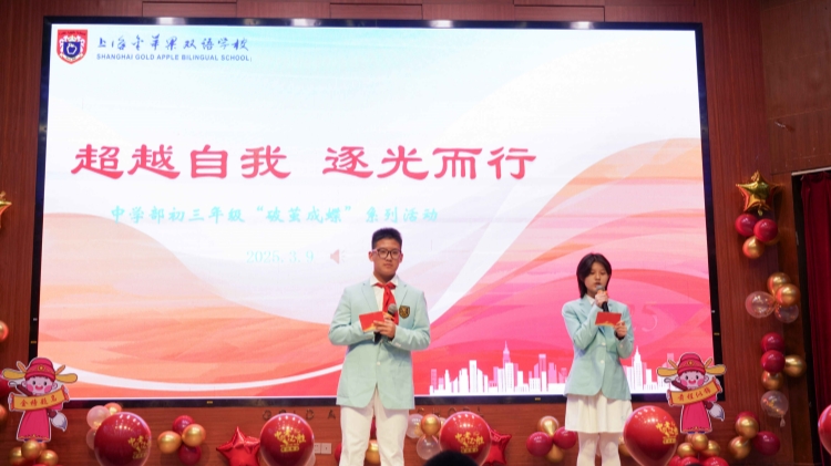 战鼓催征马蹄疾,千帆竞发勇者先。3月9日,初三年级全体师生齐聚会议中心,隆重举行“超越自我,逐光而行”破茧成蝶系列活动。校领导、家长与师生共同见证这一激情澎湃的时刻,为初三学子点燃冲刺烽火,奏响青春最强音。