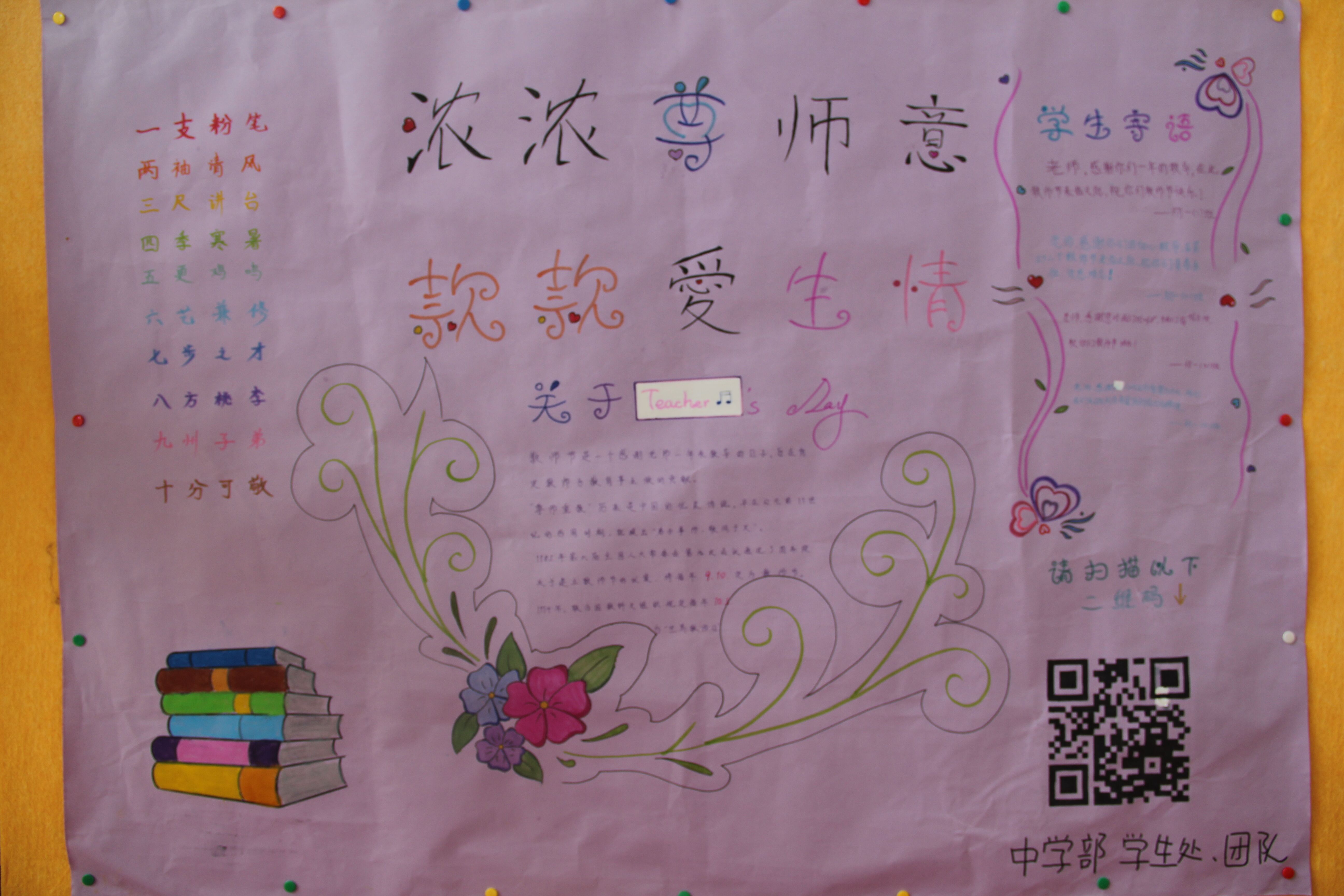 在第32个教师节来临之前,金苹果中学部的孩子们已经为在校的老师们献上了节日的惊喜——海报、黑板报、贺卡和绿色植物轮番上阵。