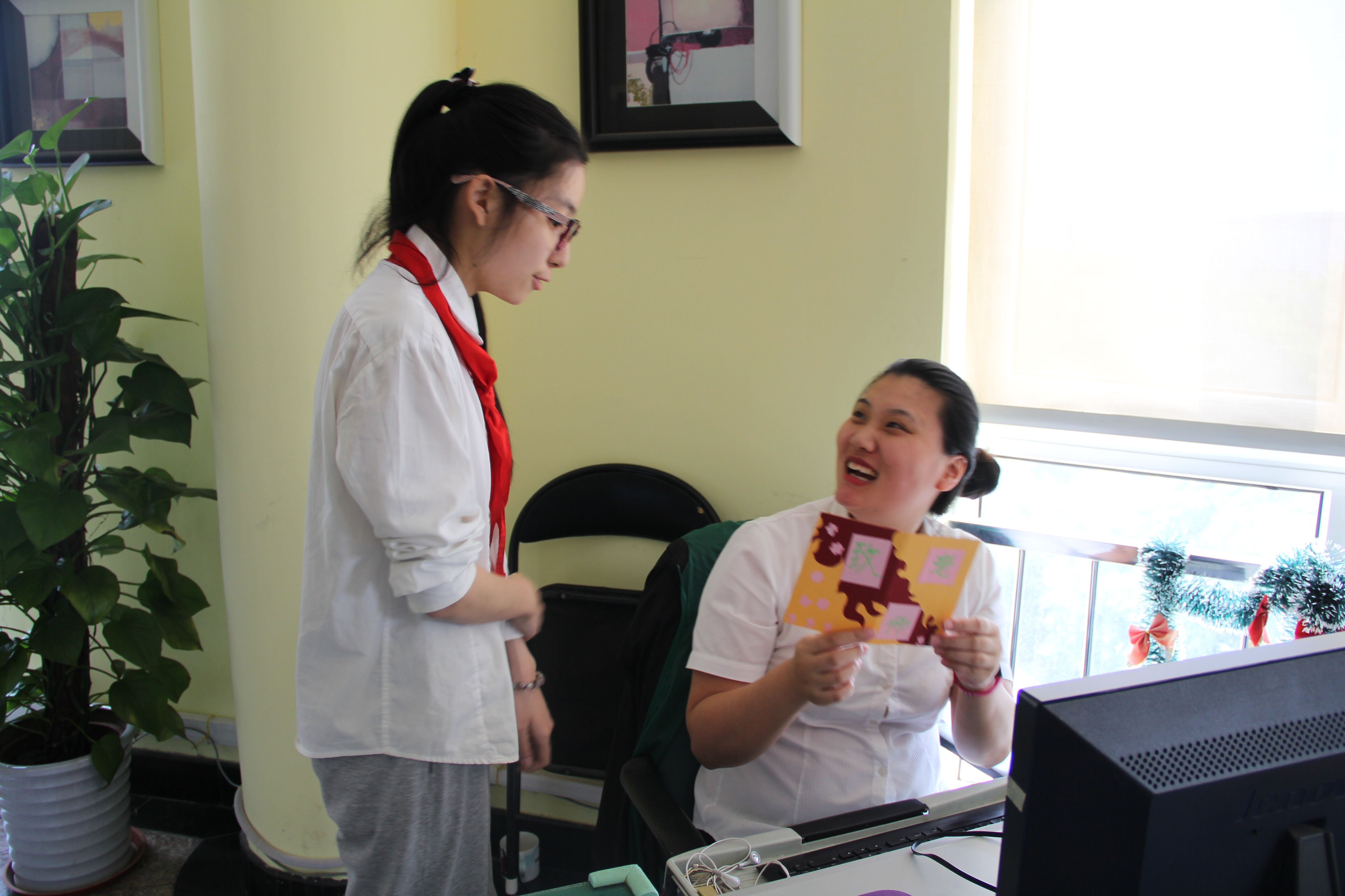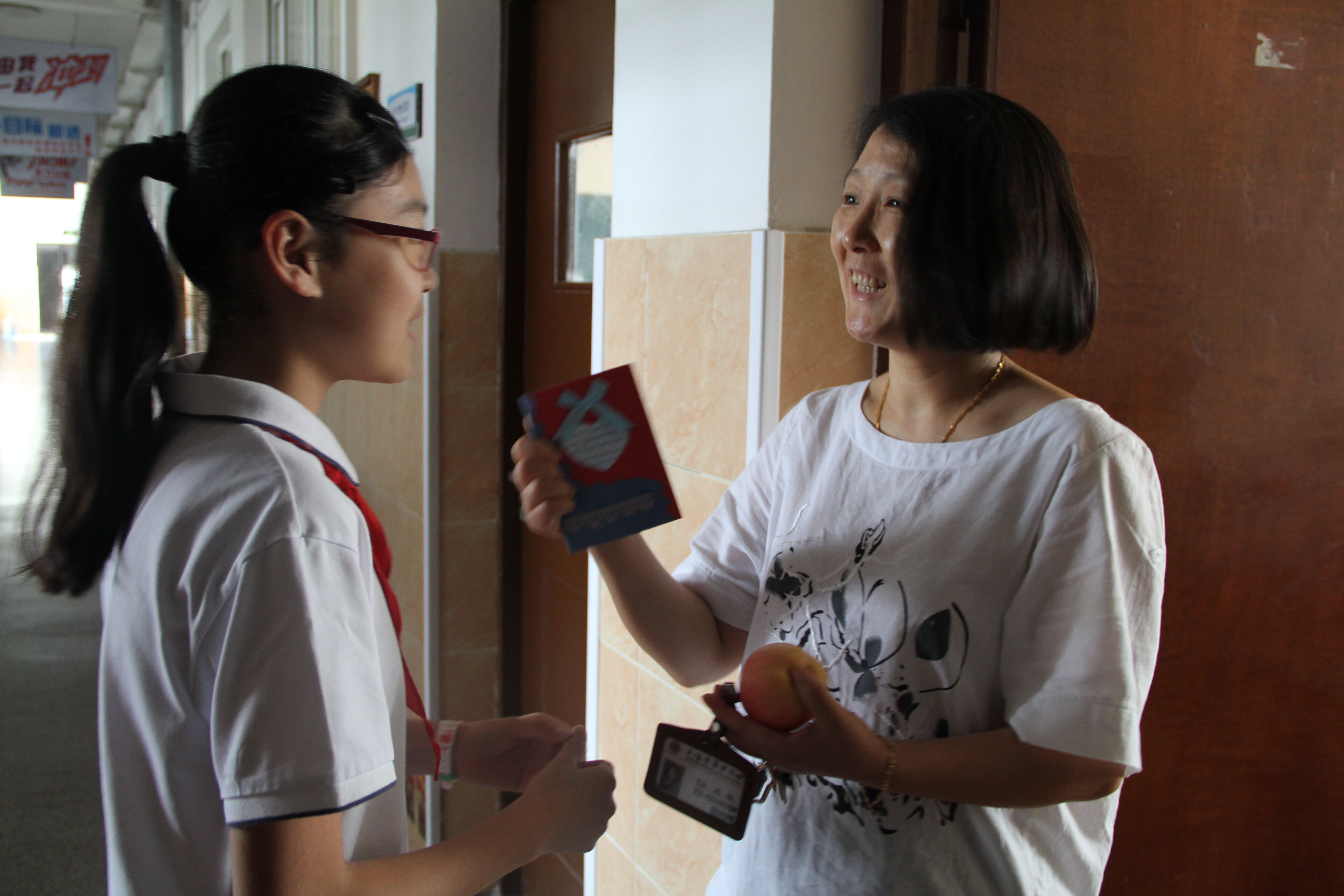 孩子们将心意卡献给亲爱的老师们