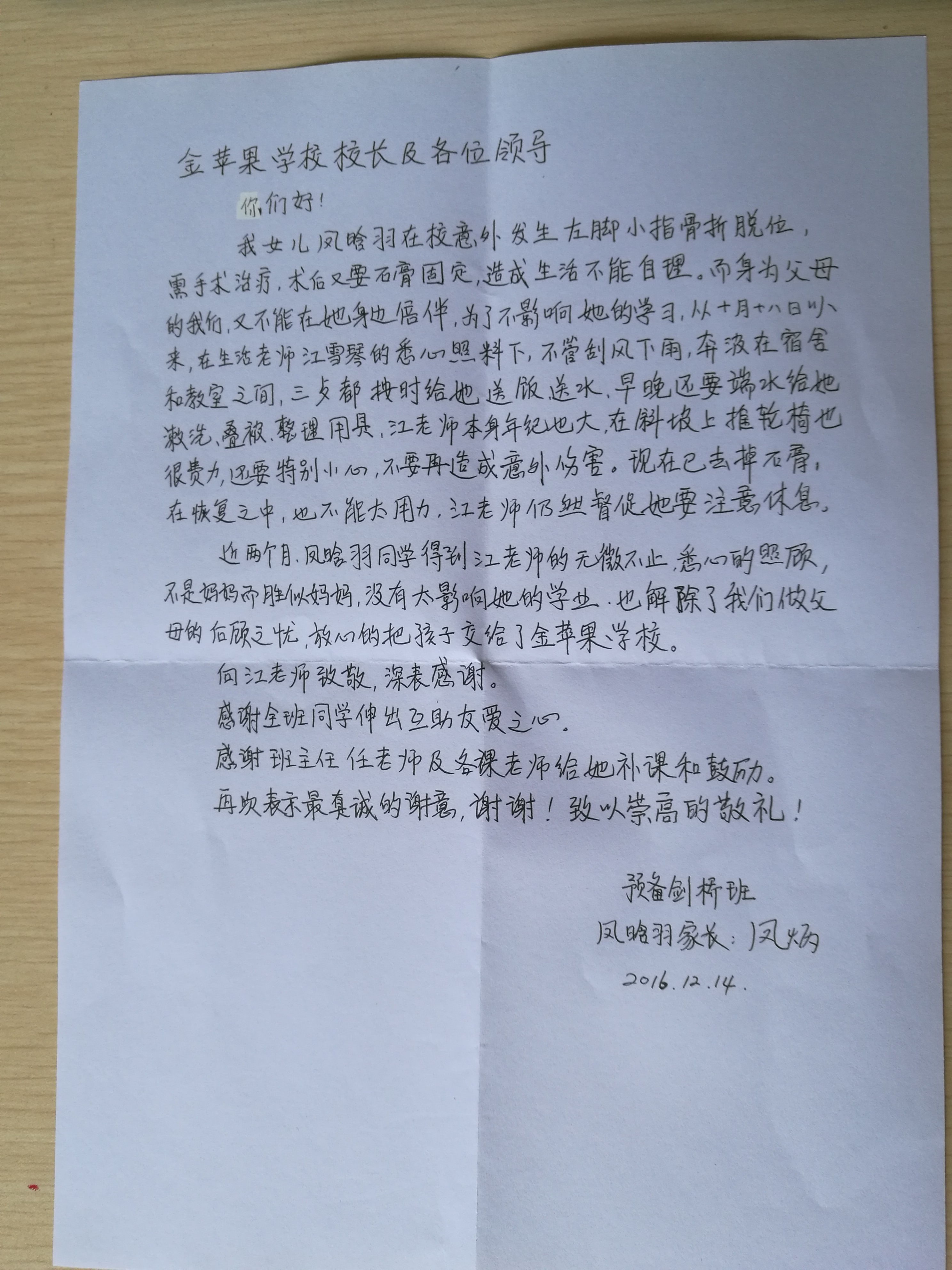 一封来自家长的感谢信