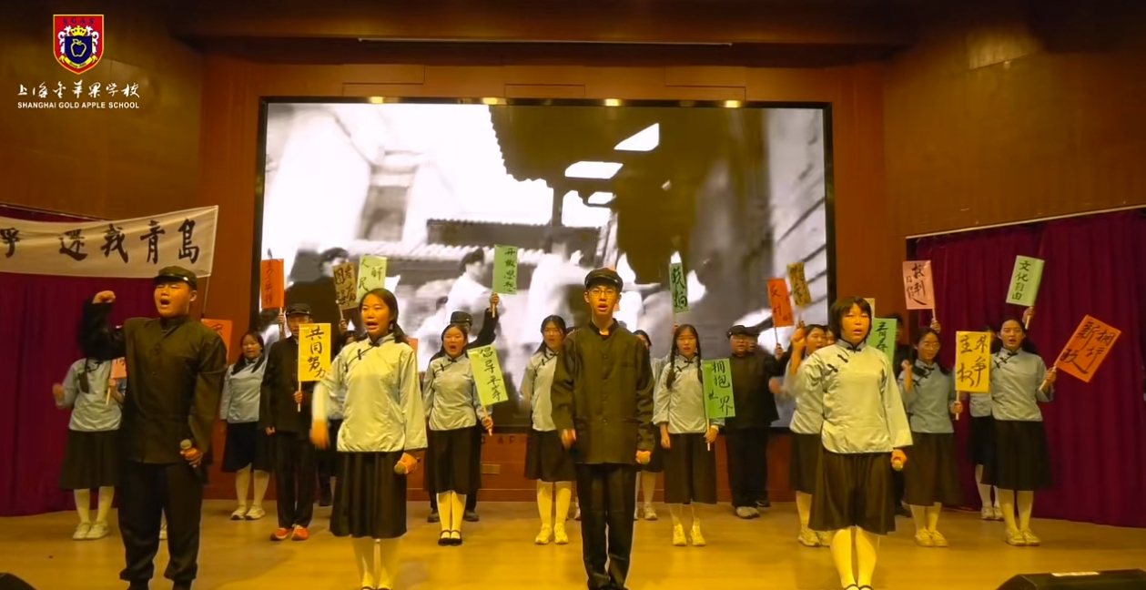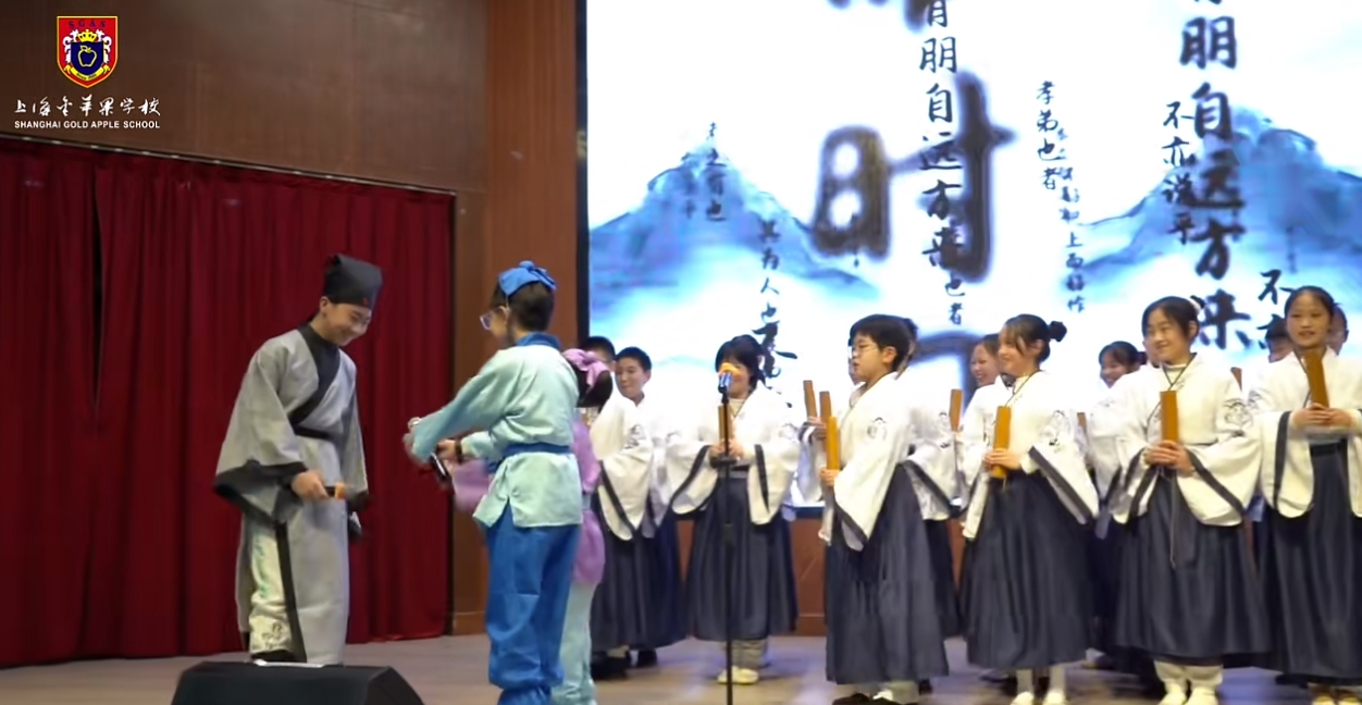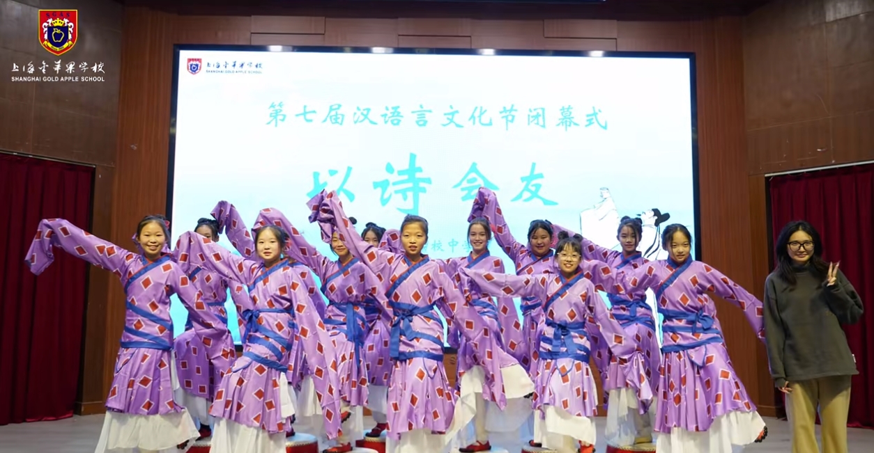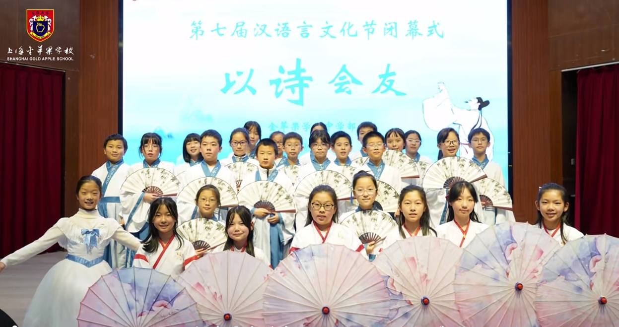 “以诗会友”2024汉语言文化节在上海民办金苹果学校会议中心成功举办,中学部于2024年12月20日下午举办了主题为“以诗会友”的汉语言文化节。本次活动旨在弘扬中华优秀传统文化,增强学生对汉语文学的兴趣和热爱,同时也为学生们提供一个展示才华、交流学习的平台。诗词朗诵,传递经典活动在热烈的掌声中拉开帷幕,由校朗诵社团带来的各项节目激情澎湃,瞬间点燃了现场气氛。随后,各班级代表依次登台,朗诵了多首经典诗词,如《论语》《鲁迅》等节目。同学们用真挚的情感和动人的声音,再现了古代文人墨客的心境与情怀。创意表演,展现风采除了传统的诗词朗诵,本次文化节还设置了丰富多彩的创意表演环节。