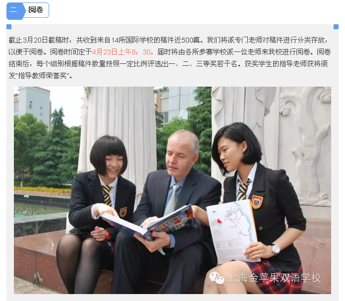 “金苹果杯”外籍学生征文比赛开始啦!