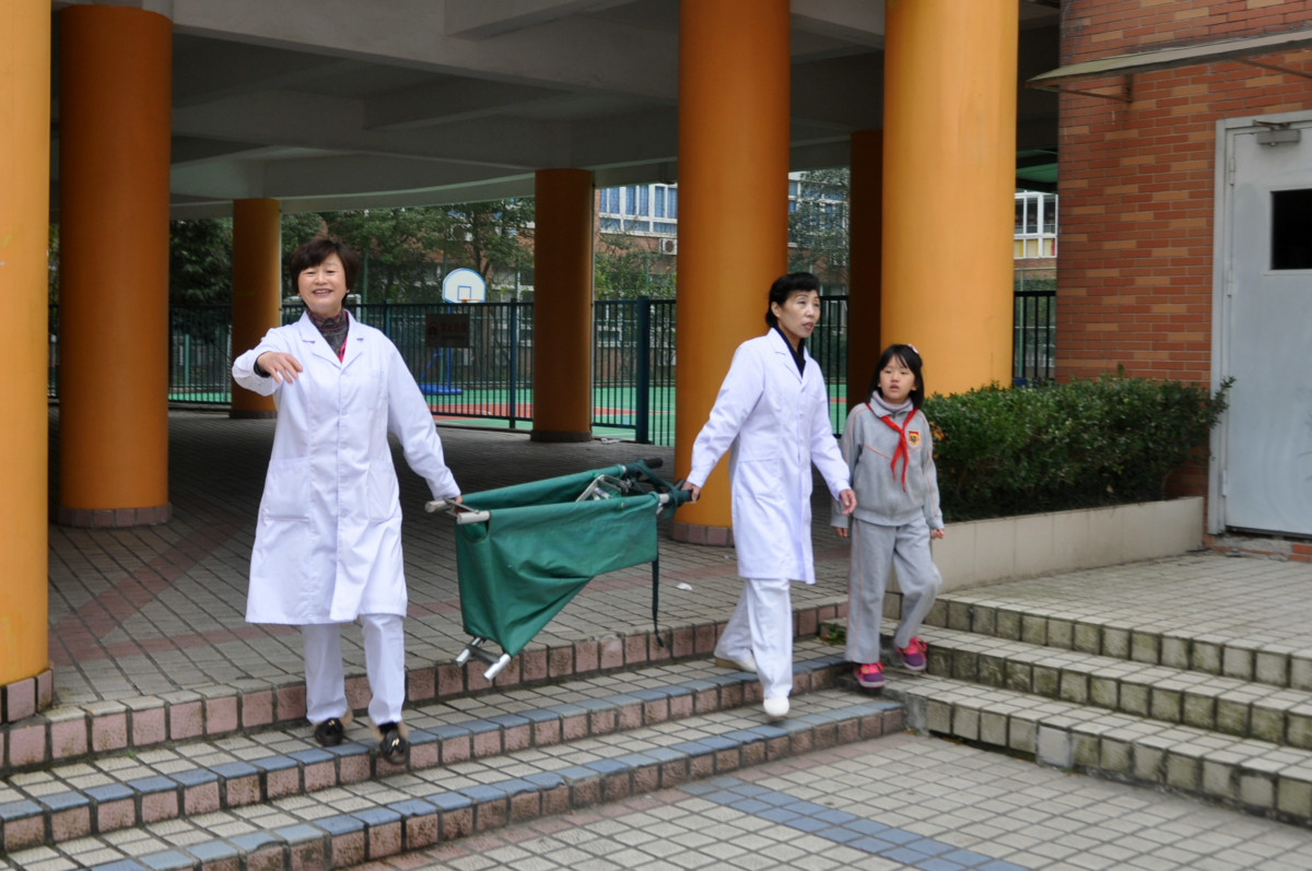 医务人员结束演练 本次消防演练动员了全校师生和后勤人员共同参与,活动非常有序高效,并取得成功。