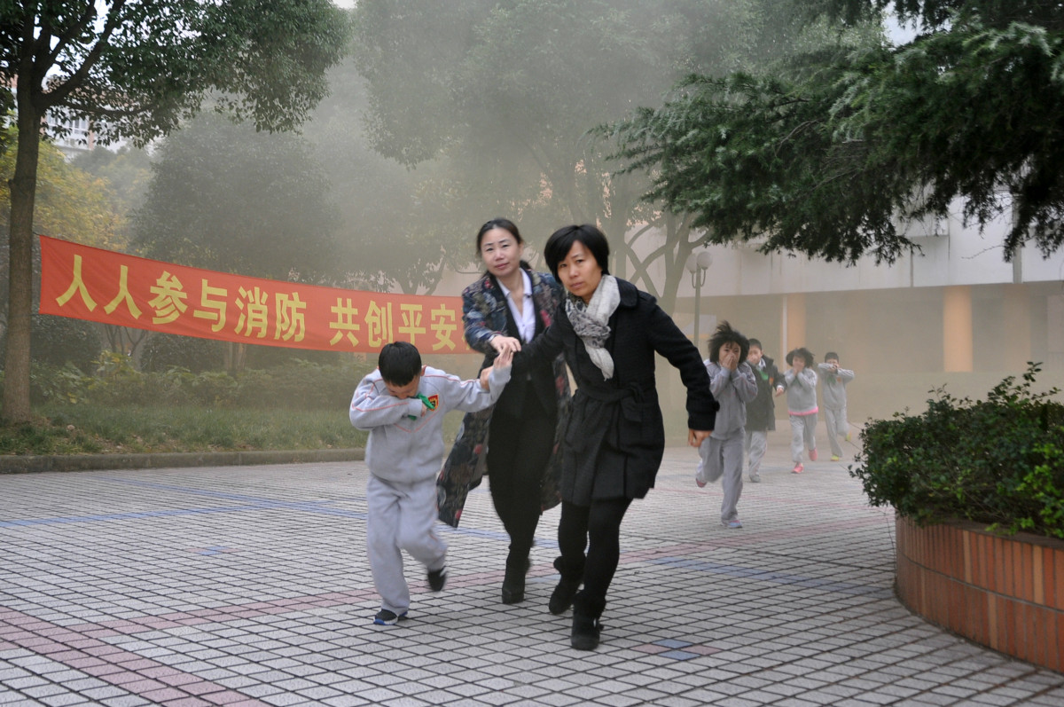 师生互助,整齐有序撤离“火场”,抵达安全区域