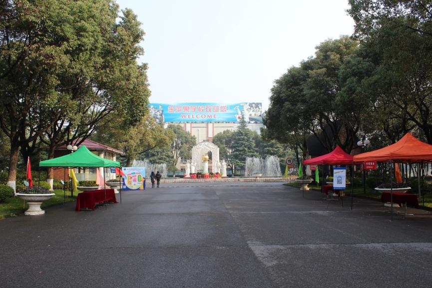 早上8:00,从校门口信步走在金苹果大道上、喷泉门口、行政楼到教学楼的连廊处、国际会议中心门前,都可以见到老师们辛勤的身影,小苹果们也积极地在做岗前培训,或为家长们指引会场道路,或在练习打鼓欢迎新苹果的到来……