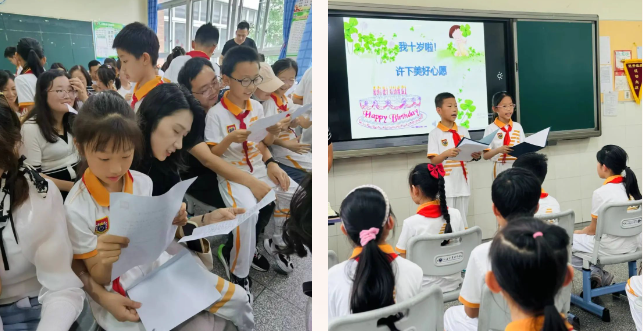 语数英各科老师和家长面对面交流,专业讲述学科要求,坦诚分享孩子现状,智慧引导家校合作。亲子运动会在体育馆如火如荼举行,拔河、两人三足、搭桥过河,真嗨!二年级的果娃们在这一天完成了从儿童到少年的蜕变,成为了光荣的少先队员,从此也更加懂事了,明白了自己要有责任感和担当,有了更加明确的努力方向。三年级举行了“我们10岁了”集体生日成长礼暨十岁生日冷餐会活动。十岁成长礼,孩子们步入少年,愿心念感恩、感谢、感激,感恩父母之养,感激师长之育,感谢同窗之谊。家长们和所有孩子们一起点燃10岁的生日蜡烛并一同祝福。一封家书环节,家长和孩子互换写给对方的一封信时,大家都潸然泪下。在难得凉爽的夏日,果娃们带着自己的家人在鸟的天堂恣意游览探秘,徜徉在一片绿意中,聆听悦耳的鸟鸣,观赏可爱的鸟儿。在教室里,果娃们成为家长会的主人,有的负责主持大局,有的大方展示自己的作品并娓娓道来,有的和家长们积极互动,踊跃发言的家长们还收获了果娃给的小奖励!多么有趣有爱的互动,让家长们亲身体会到苹果课堂的风采。校园开放周,是起点,也是见证,见证着每一份努力,每一份热爱,都将汇聚成海,波澜壮阔,奔向无限可能的远方。