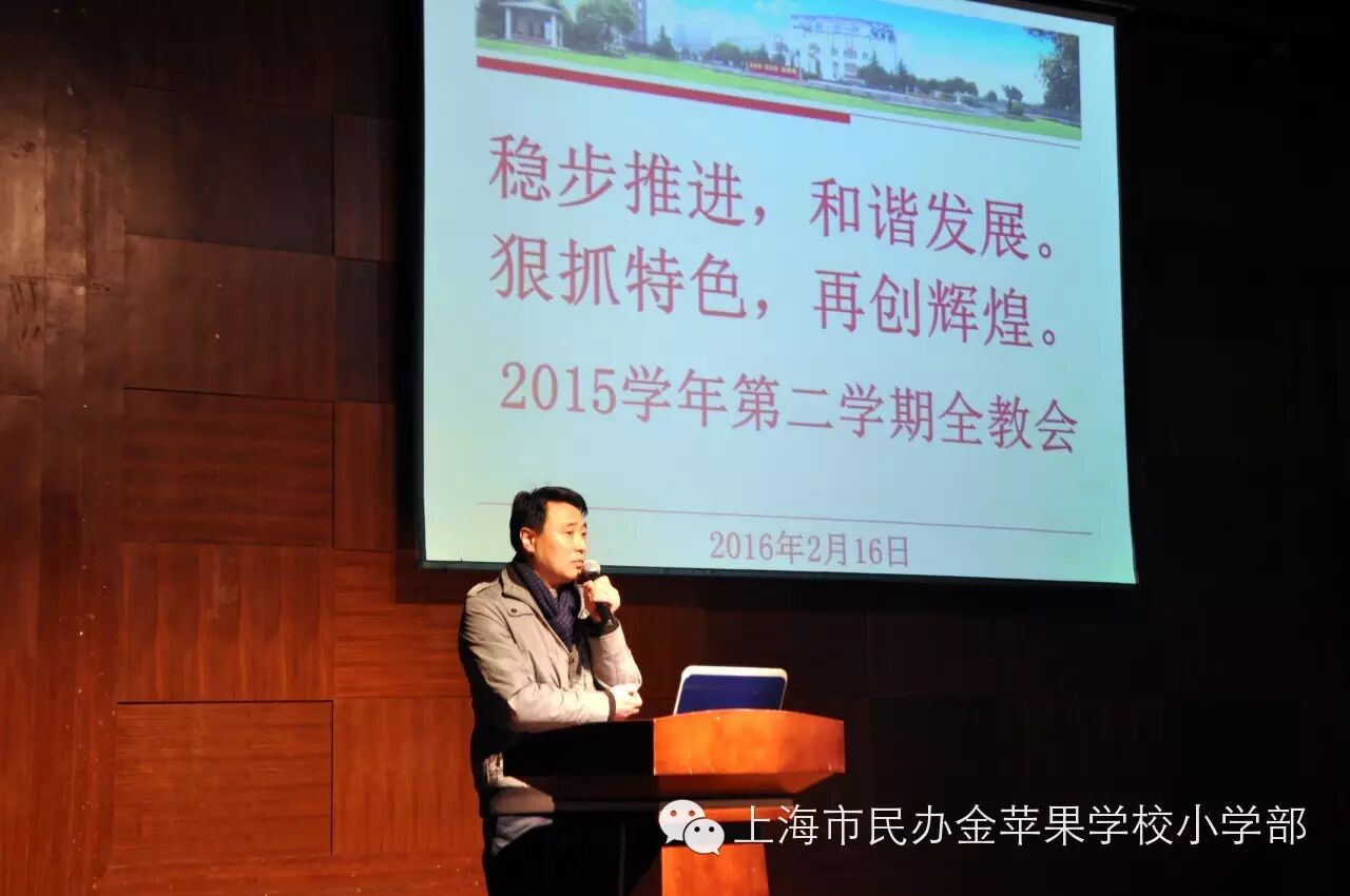 大年初九的早晨,零下的气温却没有抵挡住金苹果学校老师们上班的热情。早上9点,2015学年第二学期的全教会正式召开。老师们精神饱满的聚集在会议中心,由党支部书记朱军主持,周一飞校长为全体教职工做新学期的工作安排计划,并对教职工们提出新学期的新要求。