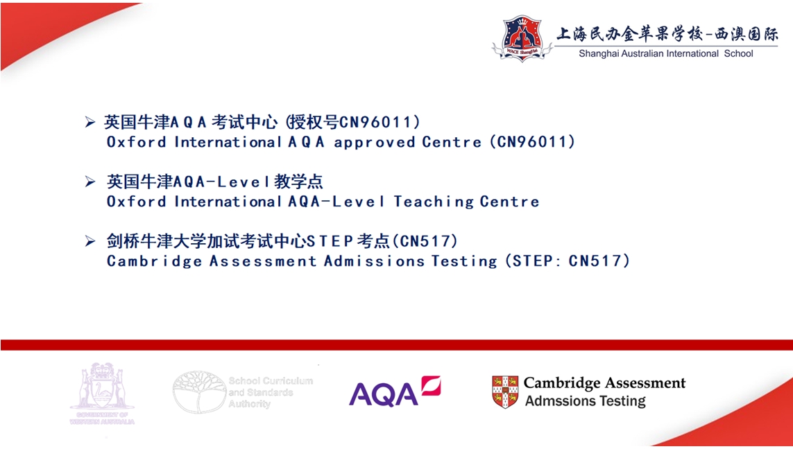 澳洲教育部为海外学校设立专门的办公室,不仅仅对校长带领的教学团队进行全方面的澳洲教育制度及执行标准的培训,同时每年会有四次对学校教学质量进行监管,因为澳洲课程很大的一个特点是平时在校分数占申请大学总分的50%,在与海外同步教学大纲的基础上,对老师教案、学生的考卷、作业等平时表现的检查,尤为重要为了帮助每一位老师把握教学进度、提高学术输出的能力,澳洲教育部及AQA考试局会定期组织老师参加培训,学校教务处会定期安排老师之间互相听课学习提高。