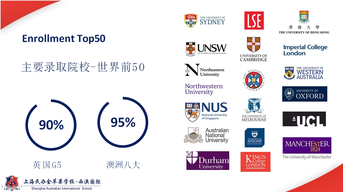 办学十八年,培养16届毕业生进入美、英、澳、加、新等世界名校就读。其中Top50的比例非常高。