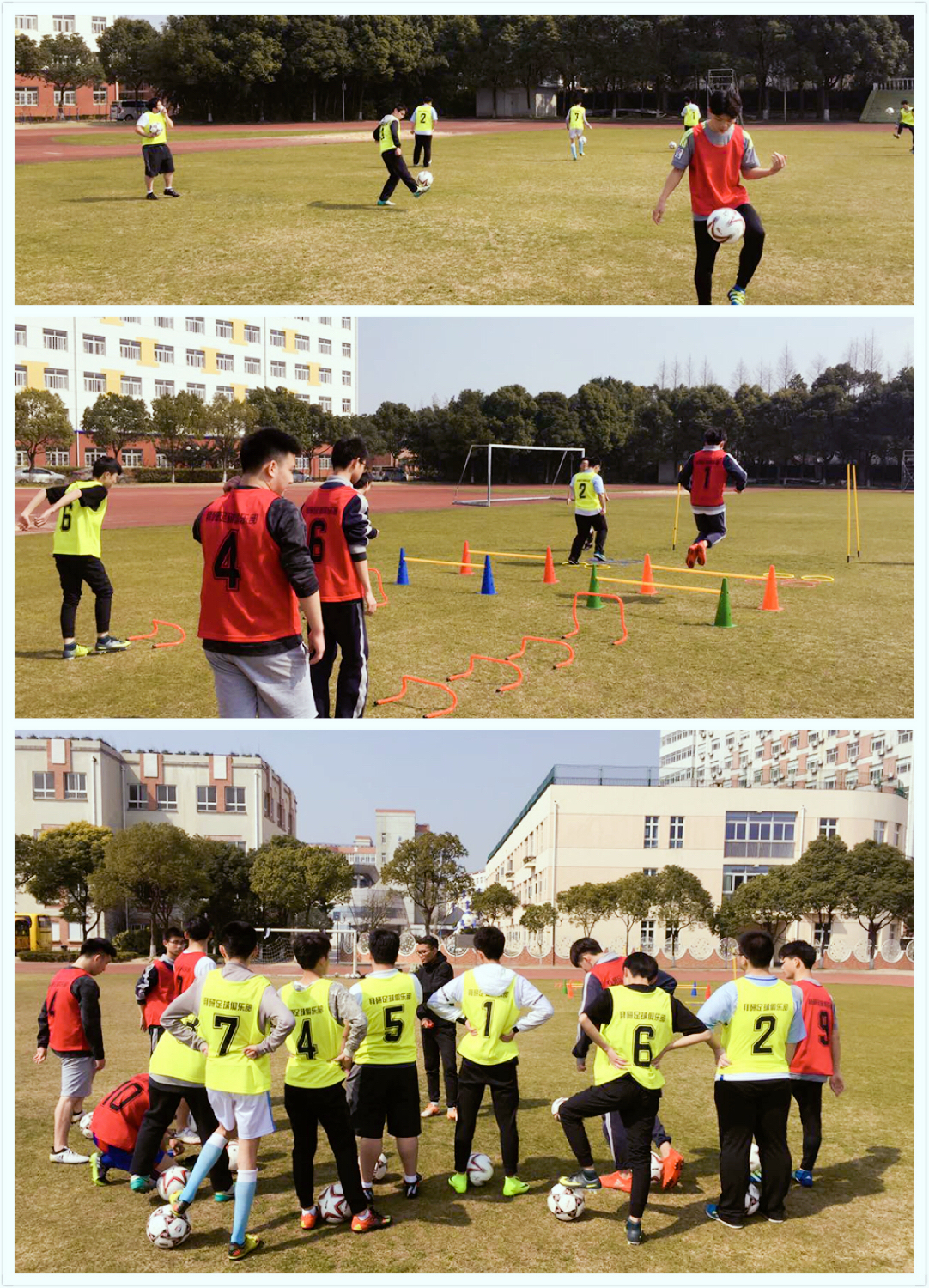 足球社团请来了上海拜研足球俱乐部的优秀教练,立足校园足球的培训,希望能给国际部学生足球运动向专业化水准发展。目前社团拥有一名亚洲C级足球教练,对青少年足球水平的训练更有针对性。在训练上更有计划和层次性,在每节训练课上,充分利用器材,提高训练效率,效果更加显著!学生每节课认真对待,积极投入训练,对教练安排的任务不折不扣完成。在前两次的训练效果,学生进步已初现。本学期的训练成果将在与外校进行的教学比赛中得以体现!