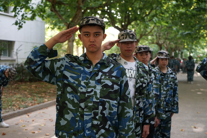 绿色的军营里,无论是正在训练的学生还是年轻的教官们,个个精神抖擞,气宇轩昂。寻着他们的足迹,同学们换上军装开始站军姿、踏步走、喊口号......