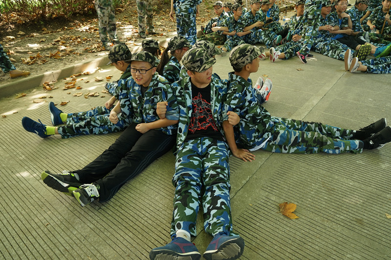 上午大家没有训练,而是做了拓展活动。为了让大家懂得团结合作,教官让每个连派出七名同学,手挽手围成一圈面朝外,然后坐在地上。教官一声令下七名同学需要尽快站起来。听起来,做起来却十分困难。当同学们一起站起来时,很容易用力不均,有些手分开了,有些就倒下去乱作一团。今日的训练场上少了一份严肃与紧张,多了一片欢声与笑语。