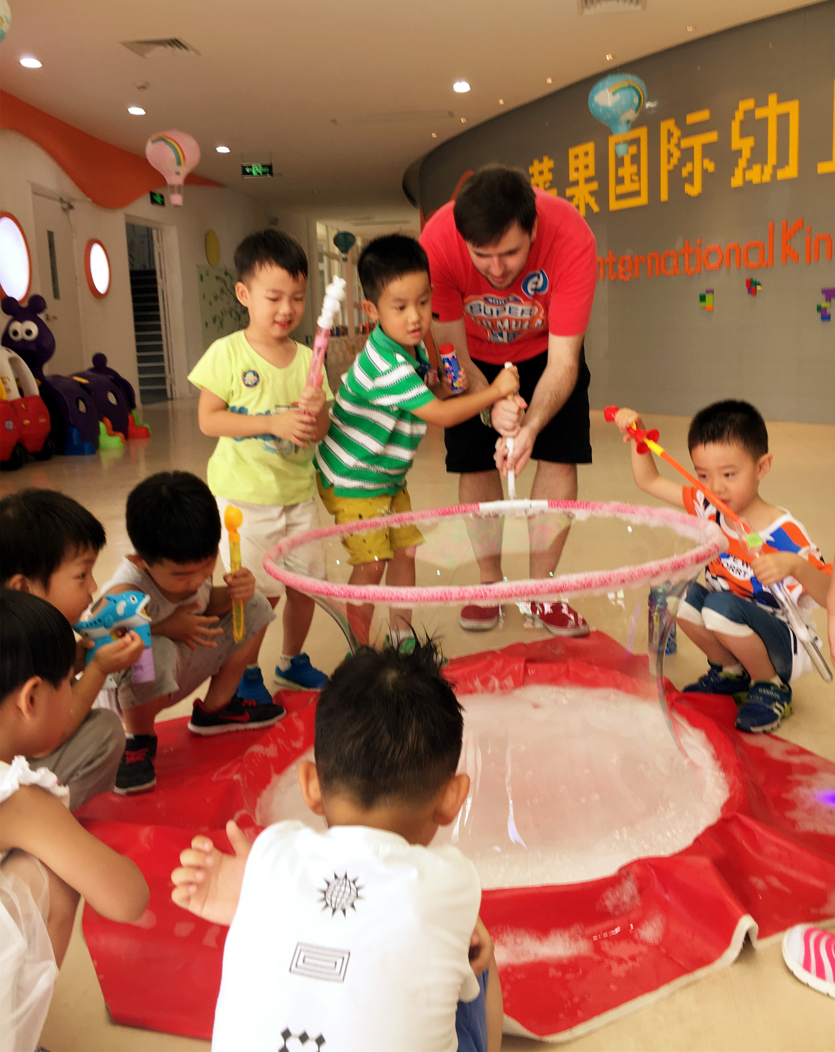 (现场,按不同年龄段由教师引导进入相应区域活动)