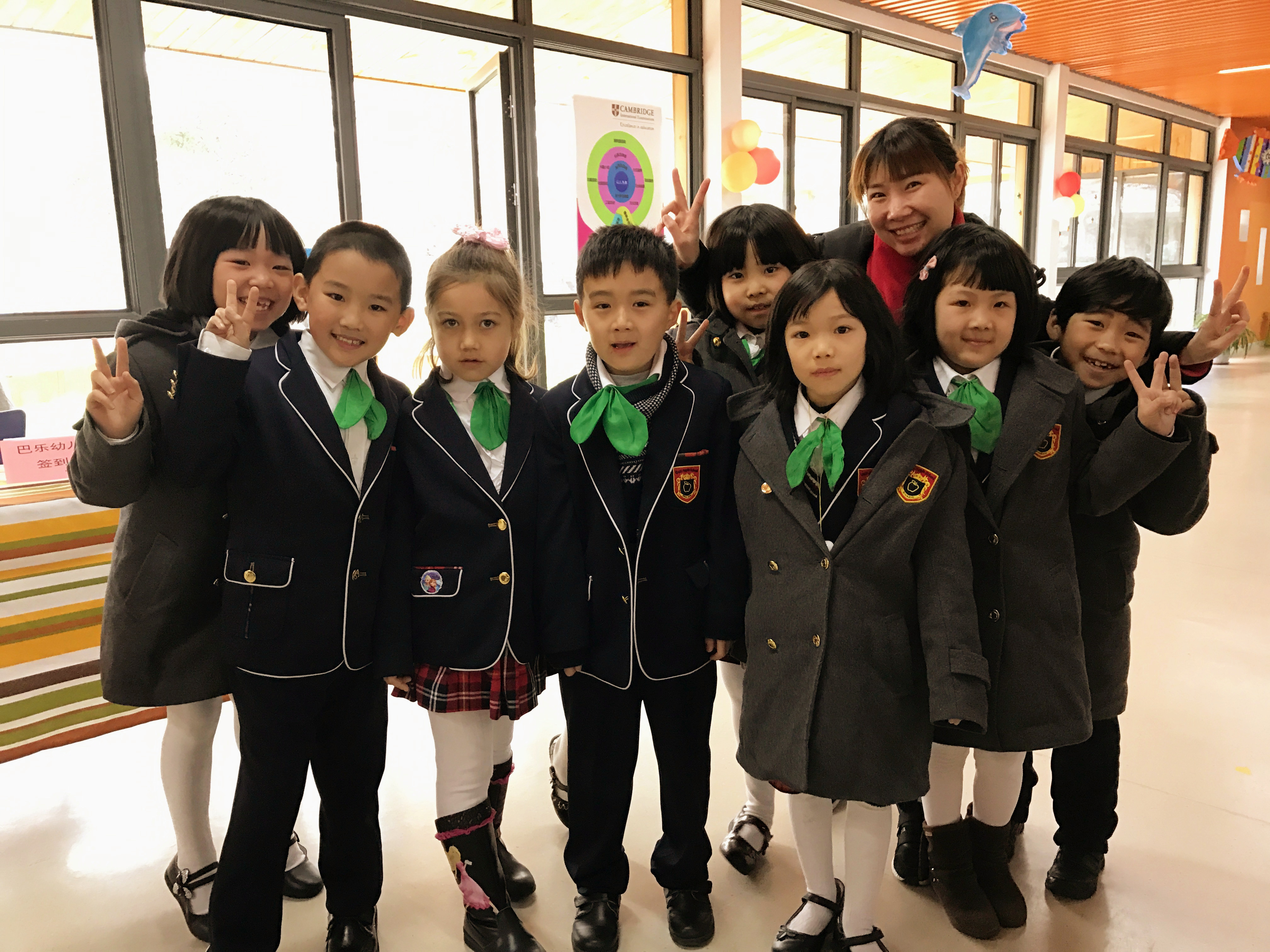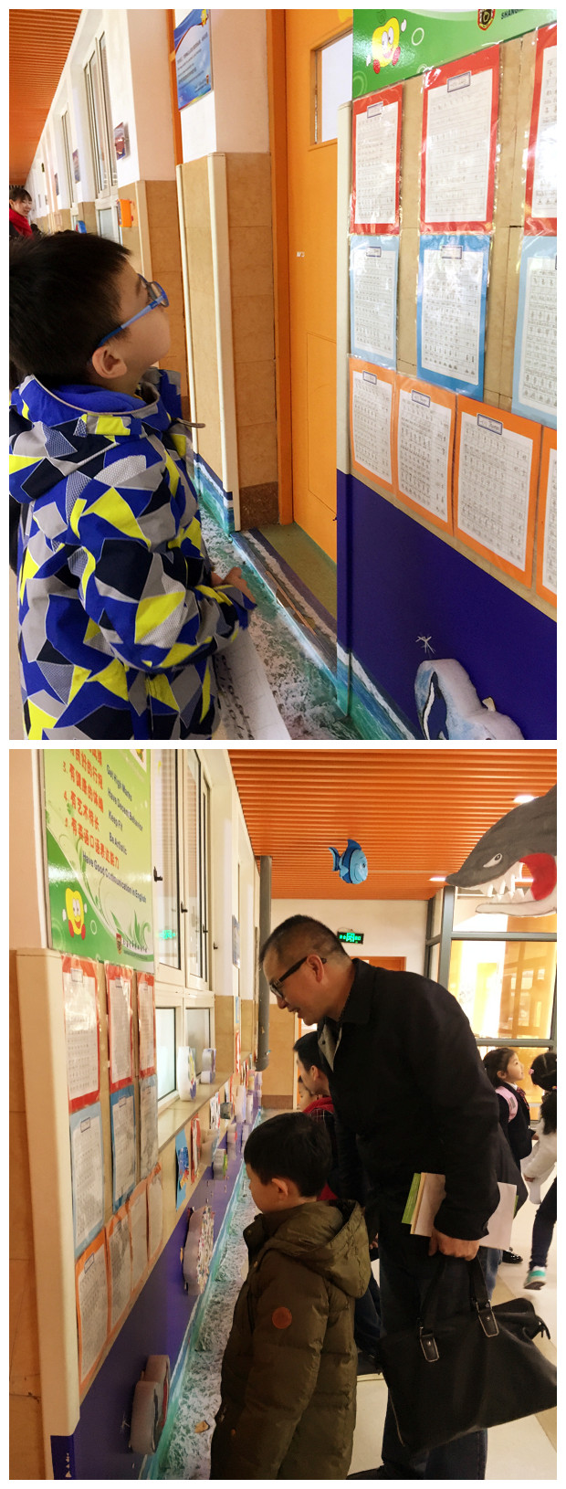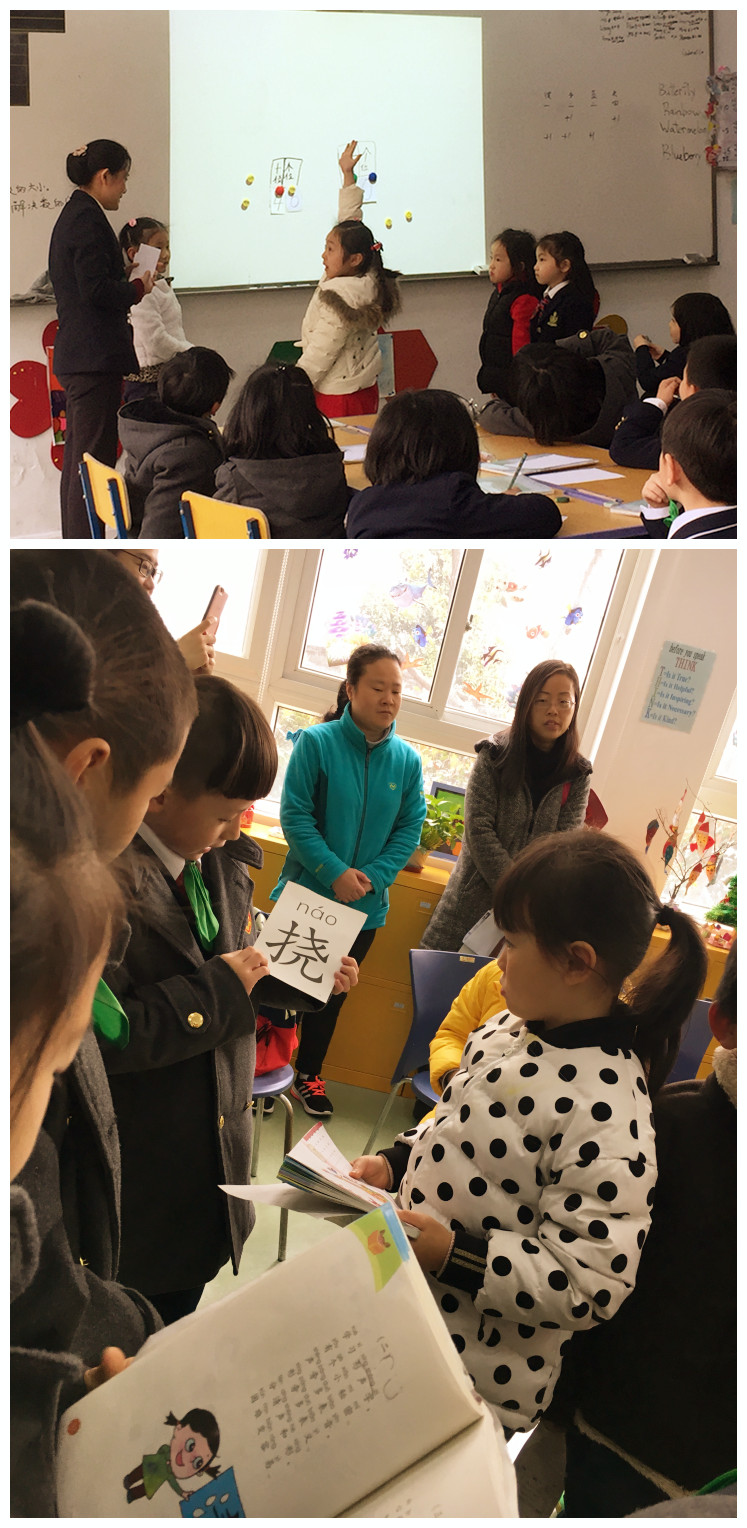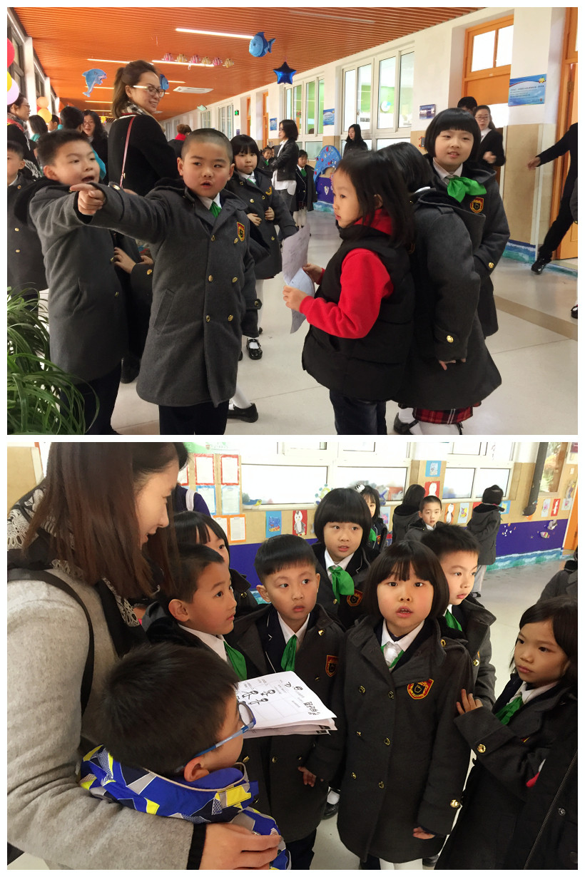 分班走进了金苹果双语学校小学部的国际剑桥班参观,我们耐心等待着近距离观摩了哥哥姐姐们的课堂教学活动。
