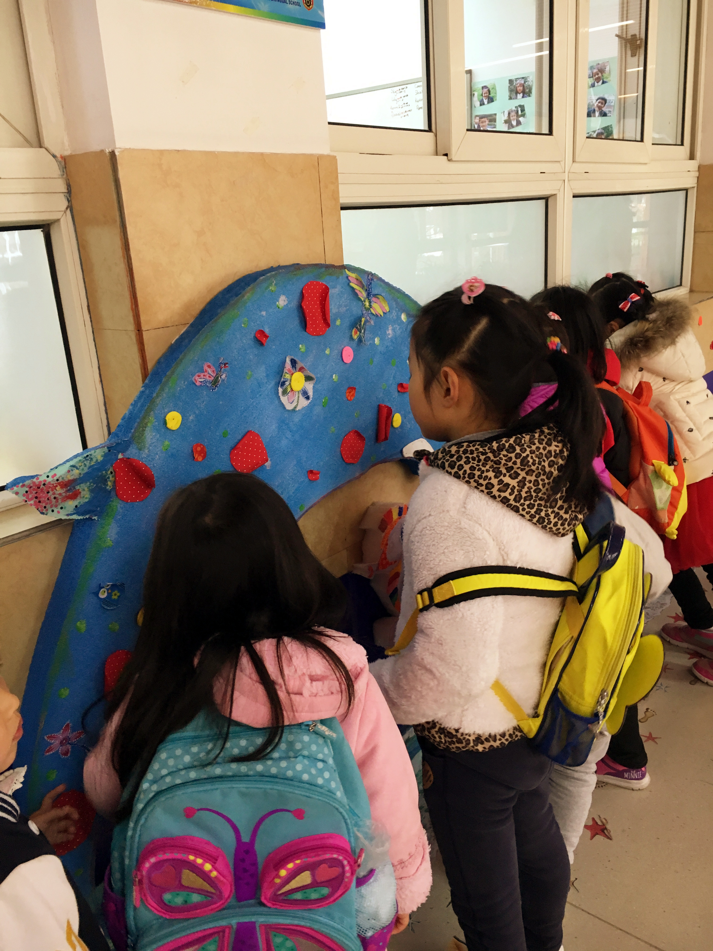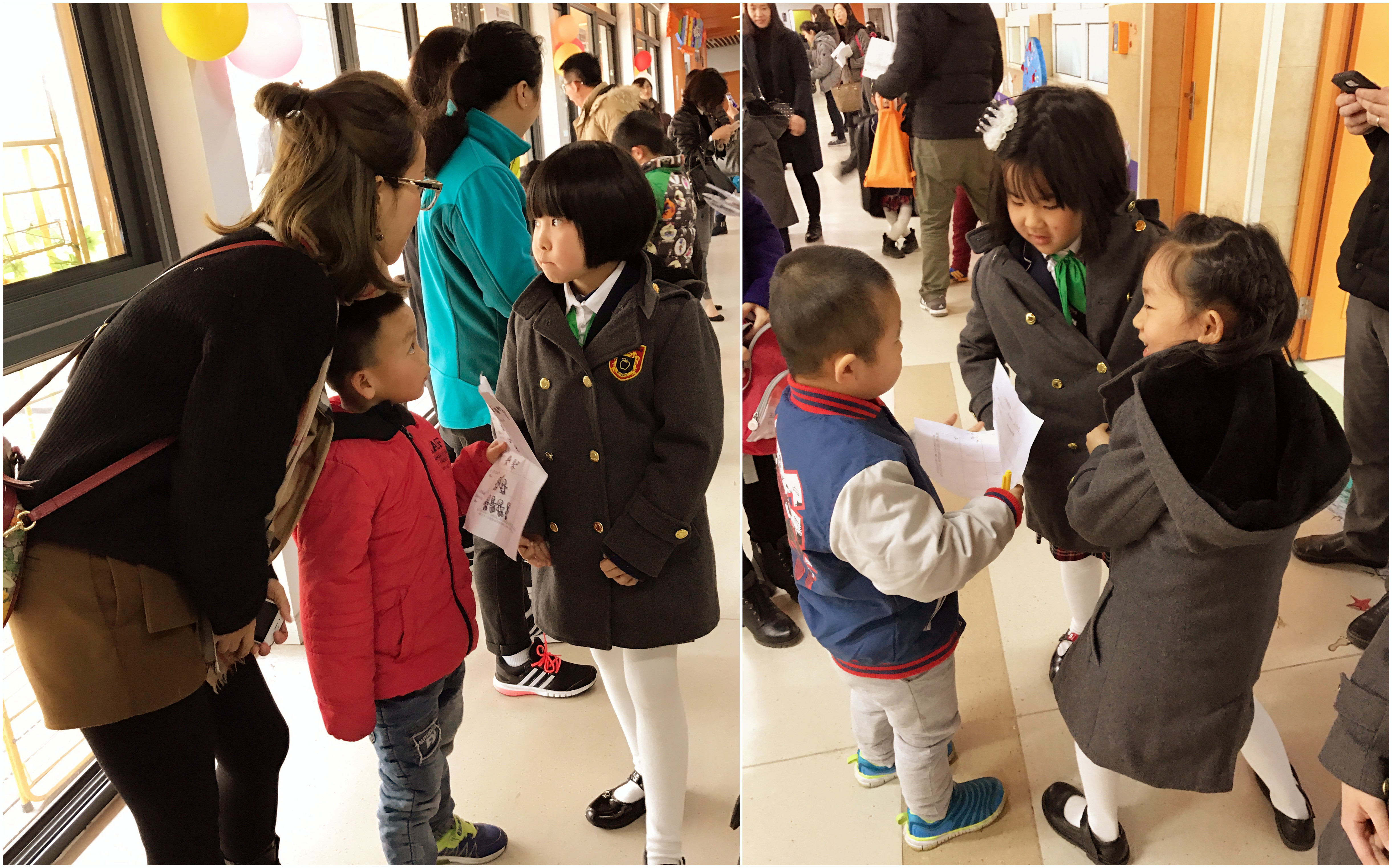 我们是金苹果幼儿园大班的孩子们。时光飞逝,我们在几个月后就将成为小学生,我们对小学生活,可说是充满了好奇呢!为了满足我们了解小学、和小学生是怎样学习、生活的愿望,316日上午,我们在老师的带领下,带着问题、带着调查表,探访了金苹果双语学校小学部。值得一提的是,这次的探访队伍里加入我们的爸爸妈妈们,这让我们的队伍更显得壮大。