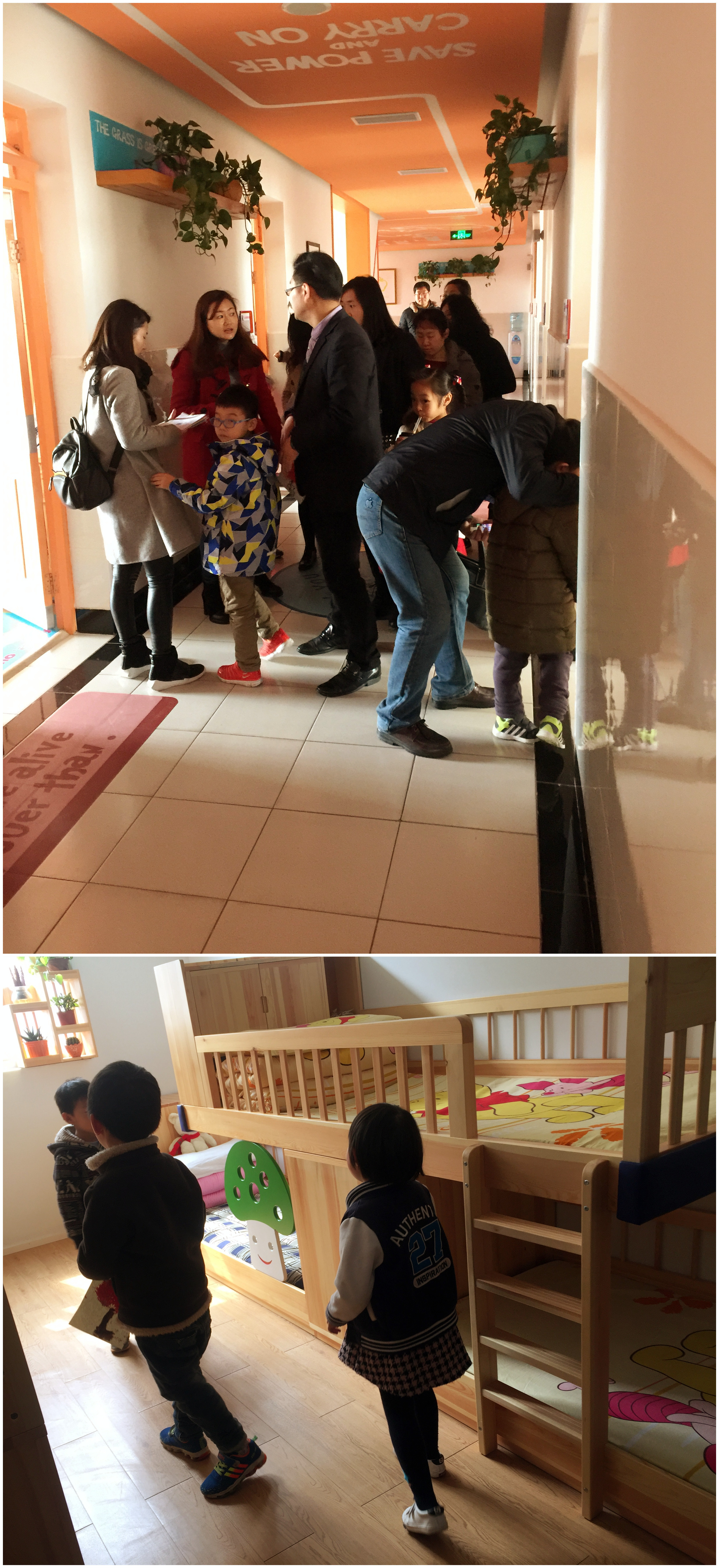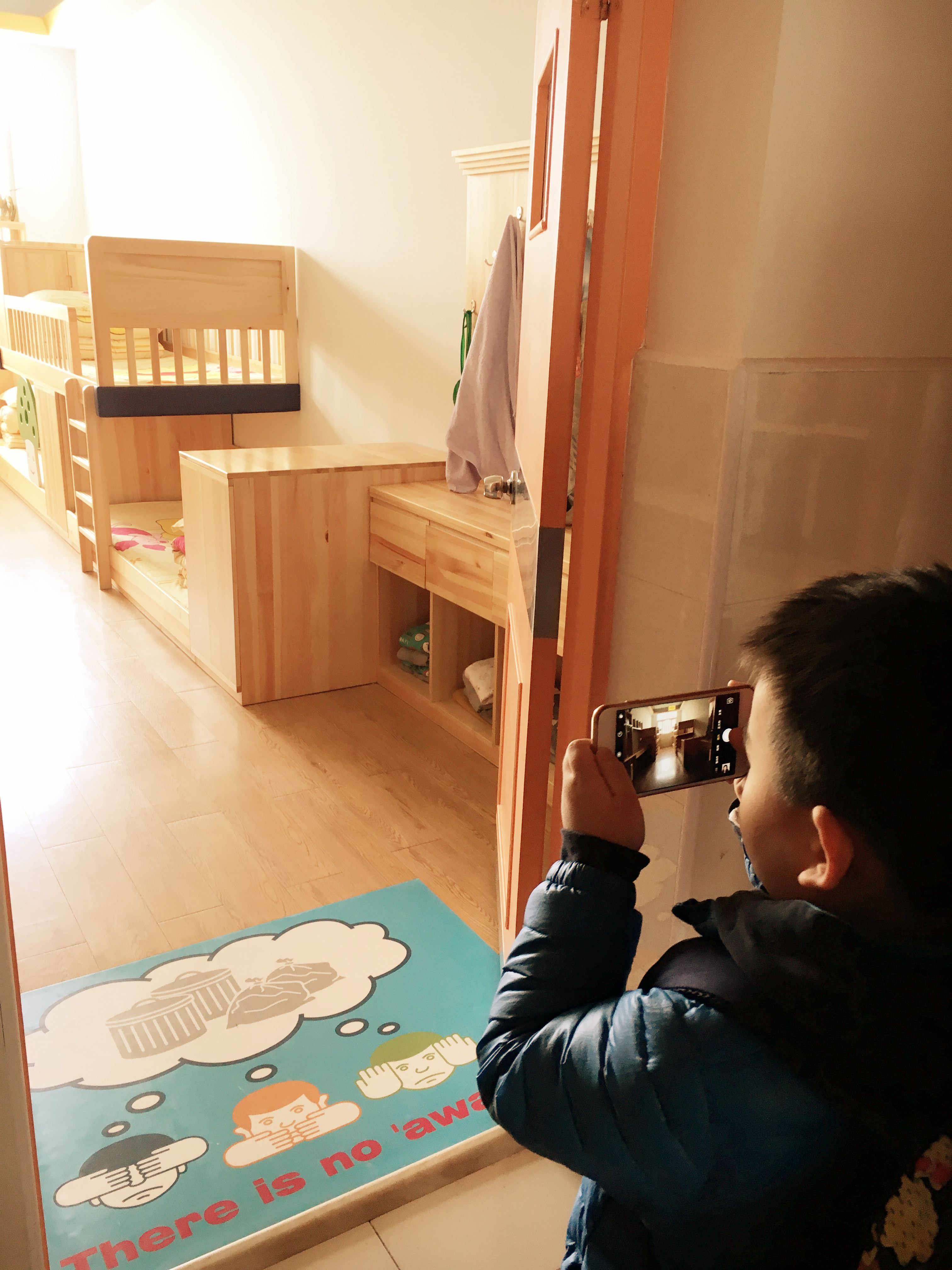这是哥哥姐姐们住宿的房间,整齐的寝室,充满童话气息的风格……拍张照片纪录一下吧!