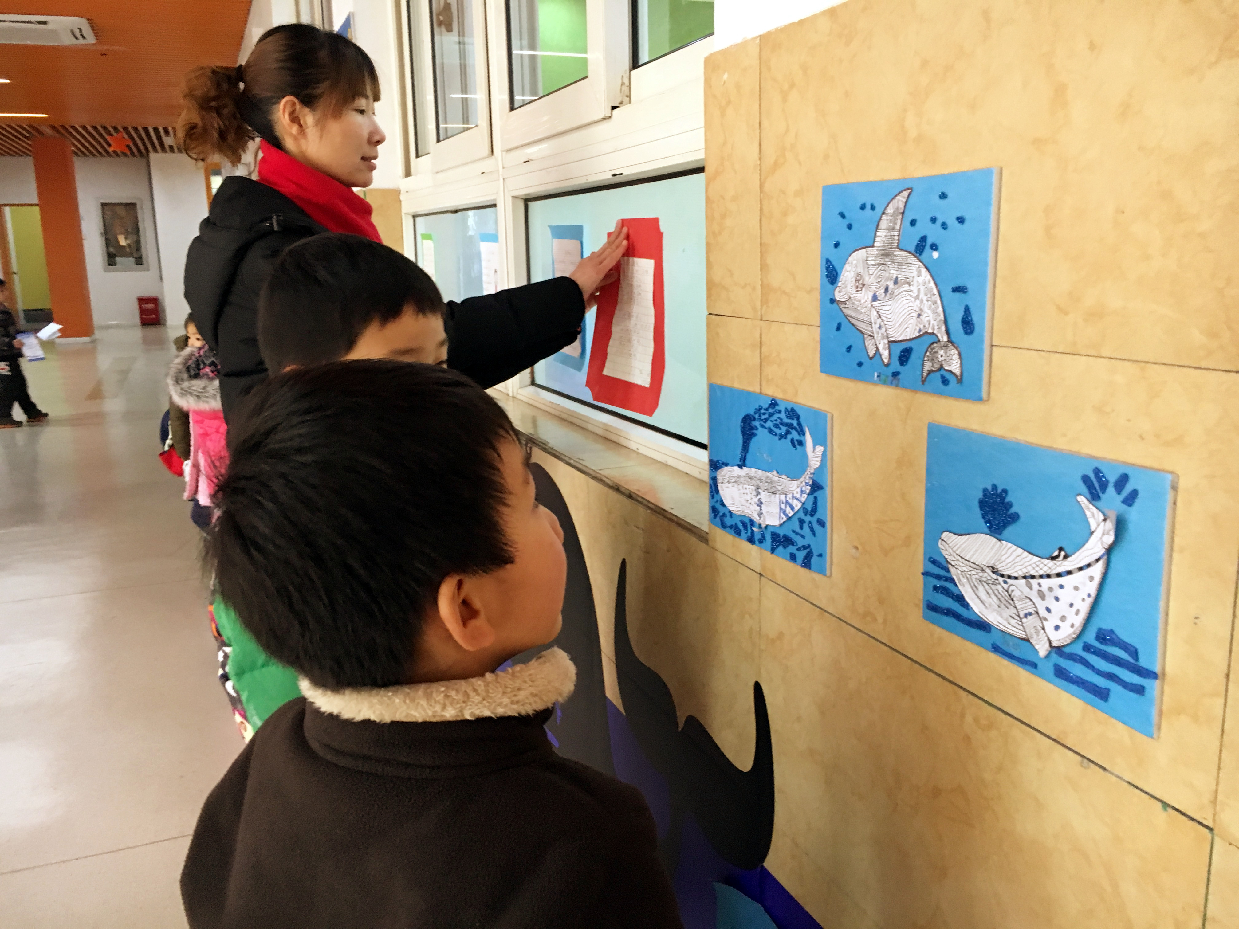 哇,走廊、墙面上缀满了各种海洋里的动物,大大小小、形状各异,这缤纷的海洋主题可说是深深吸引着我们的眼神。
