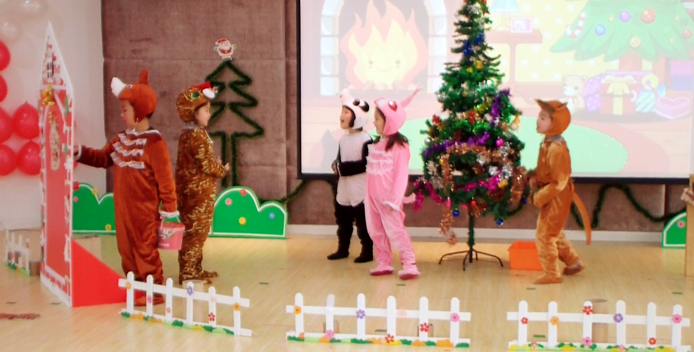 双语国际是金苹果幼儿园的课程特色之一。在圣诞欢乐秀的开场,大班哥哥姐姐们就带来了英语童话剧-“小动物的圣诞节”,这是他们首次挑战自我,将各种角色大胆活泼地呈现在舞台上,还展现了自己流畅的的英语口语表达能力。