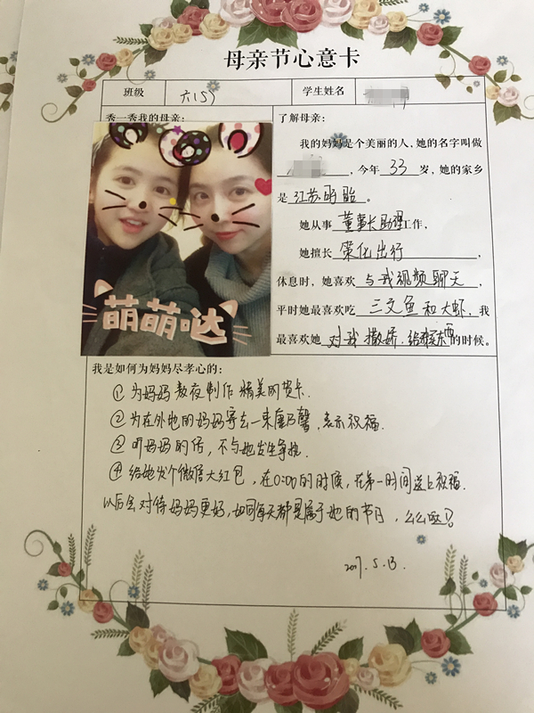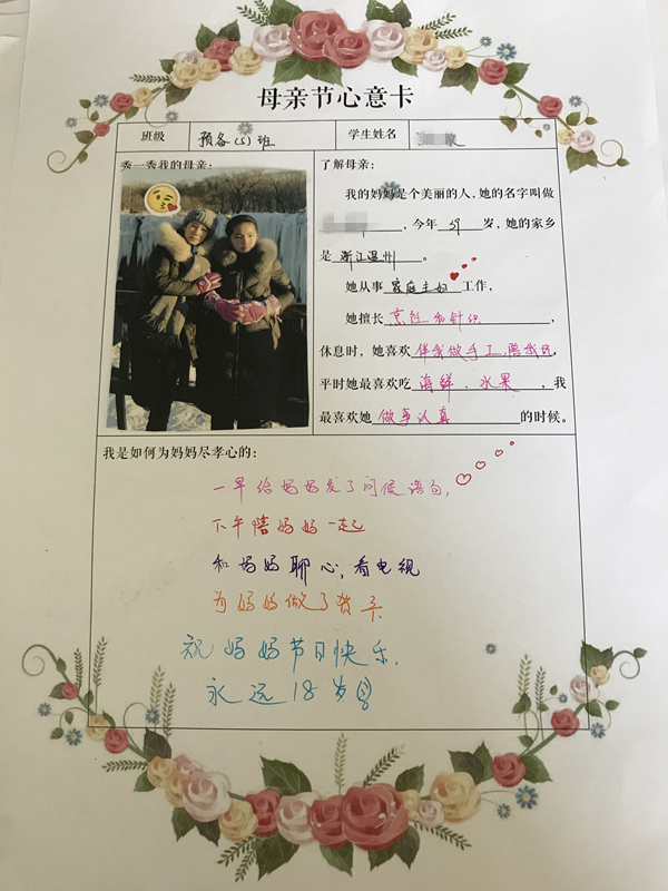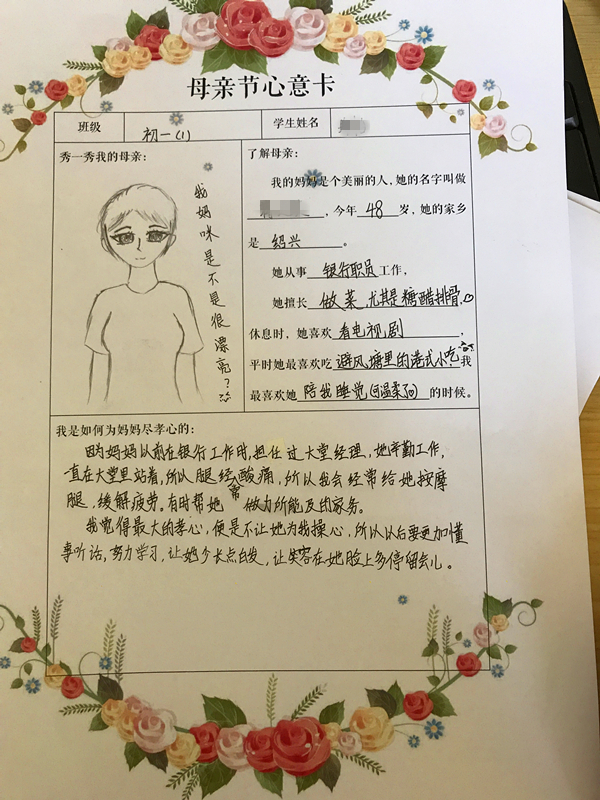 在母亲节来临之际,中学部给每位同学都下达了一个特殊的任务!