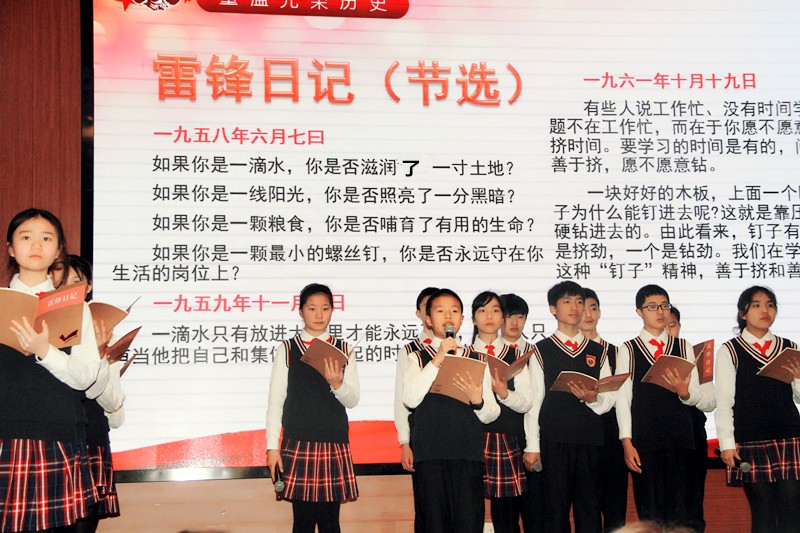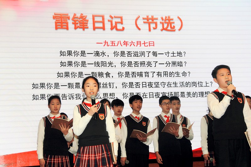 全国学雷锋大联盟学校、上海市市八初级中学师生朗诵他们的《雷锋日记》,分享他们的学雷锋故事。