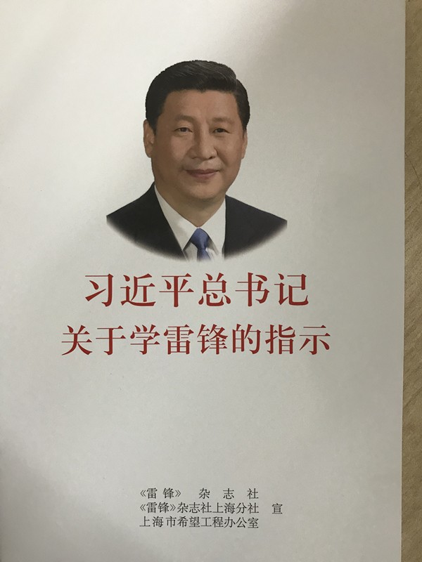 杨怀远老师向学校赠送《习近平总书记关于学雷锋的指示》。