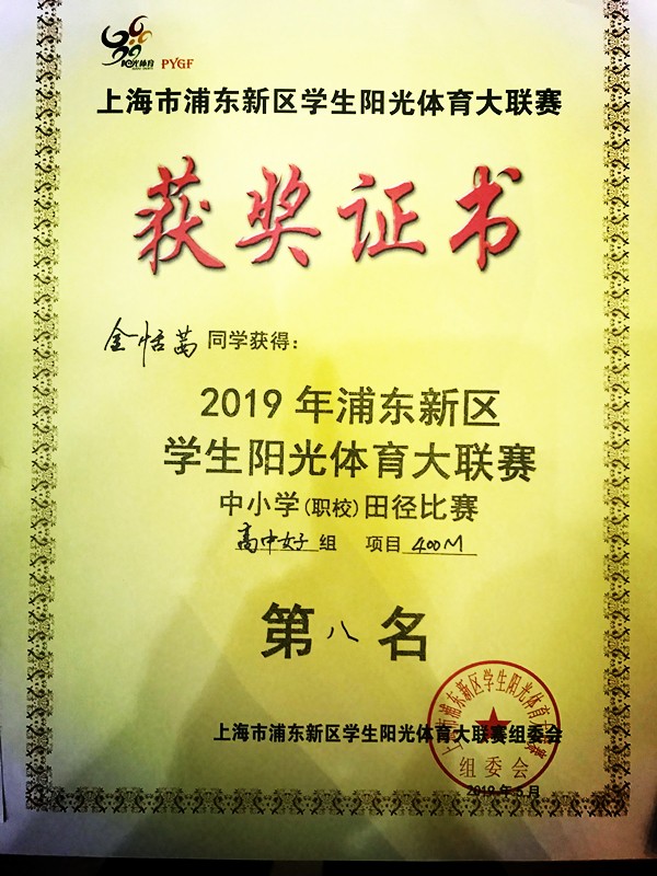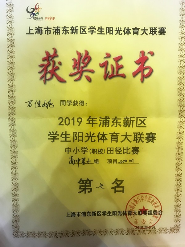 在5月12日举行的上海市浦东新区阳光体育大联赛中,我校运动员获得佳绩!