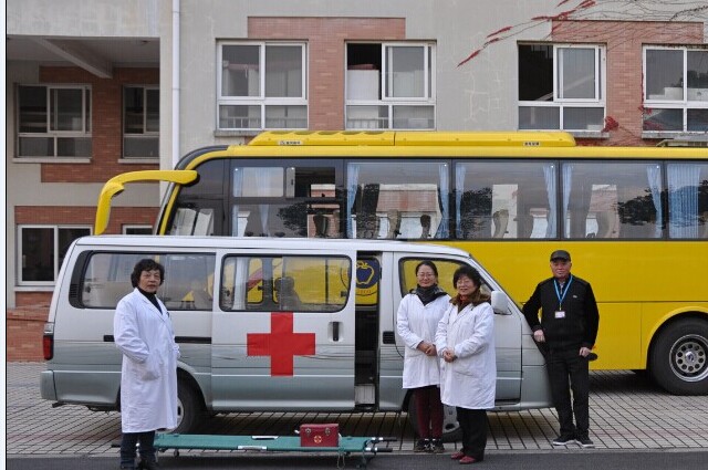 灭火演练                             校医、司机严阵以待