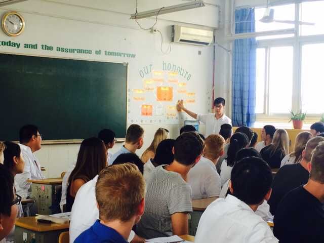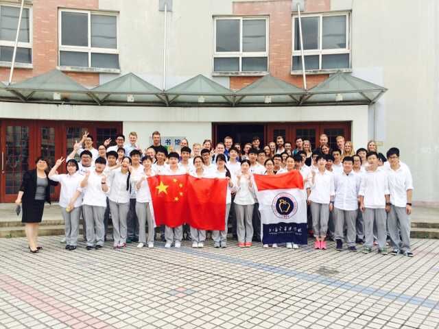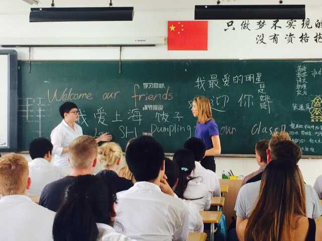 高一1班同学在齐梅老师的带领下,早早的在教室等待着客人的到来。9点30,丹麦师生准时进入教室,受到了热烈的欢迎。在接下来的2个多小时中,他们相互介绍自己,学习中文和丹麦语,进行了游戏的互动,中国学生还介绍了教室的布置和“我们的一天”,教室里传来阵阵笑声和掌声。