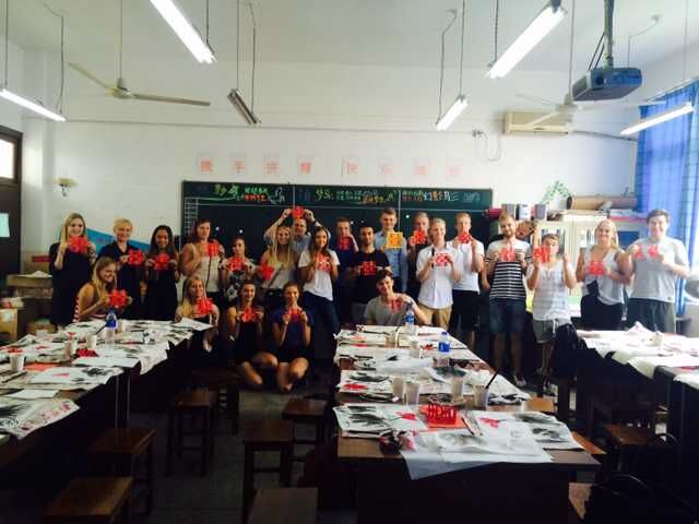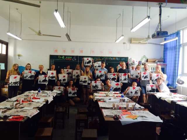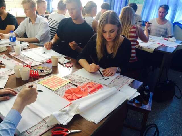 在午餐过后,丹麦学生开始了中国传统文化课的学习之旅。剪纸、国画、武术,学习加练习,大家都乐在其中。