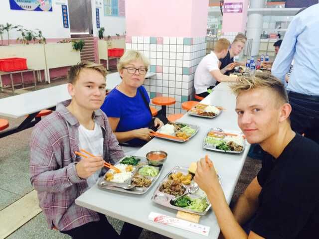 接下来,高一同学带领丹麦师生游览的校园,教室、会议中心、宿舍、图书馆、操场、食堂等地,最后在图书馆有进行了将近半个小时的互动。大家相互教对方本国的歌曲,中国的代表歌曲当然要数《茉莉花》啦,学完歌曲,两国学生还PK了舞蹈,不亦乐乎。