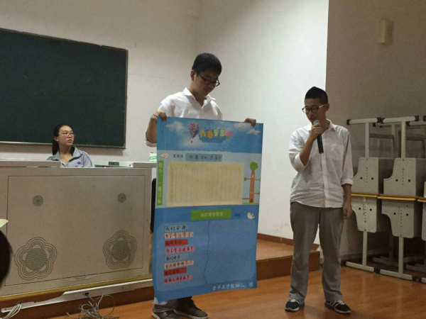 接下来是年级组长钟莉萍老师对同学们的精彩表现作出了表扬,她为分享的同学们的才华点赞、为同学们斗志昂扬的精神喝彩!同时她鼓励所有学生用人生的拼搏,打造精彩的人生。中考千难万难,也要咬紧牙关、破釜沉舟、背水一战,师生携手共进,打造2016届中考的辉煌!