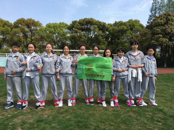 第五组出发的初一2班TOP team就没这么顺利了,虽然出发时检查了绑带情况,但走到一半时绑带居然脱落了,重新系紧绑带费时巨大,成绩一下子就落了下来。不过TOP team的队员们并不气馁,他们还会在其他活动中将冠军抢回来的!