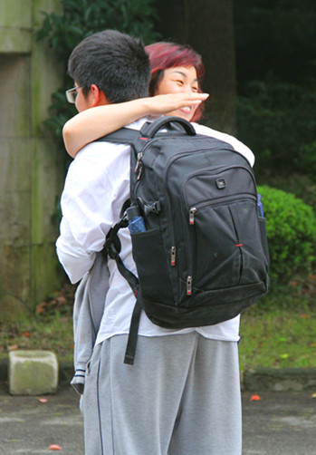 送别姐姐的弟弟。三年后的今天,我将是主角;三年后的今天,我们在这里相会。加油,未来在我们手中!