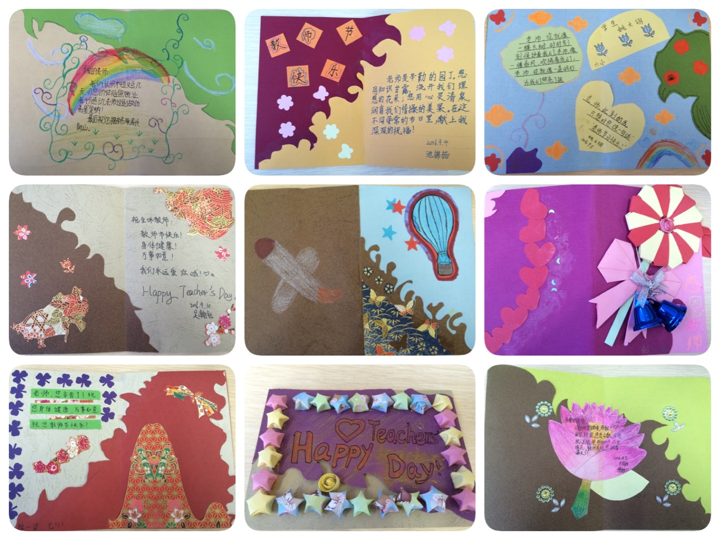 每一张卡片都匠心独运、设计精良,一句句真心的话语饱含着学生们对老师们的感恩之情,字里行间满溢着爱与心意。当老师们收到卡片时,脸上不禁漾起了温暖的笑容,惊喜于卡片的制作精美,更感动于孩子们真切的留言。