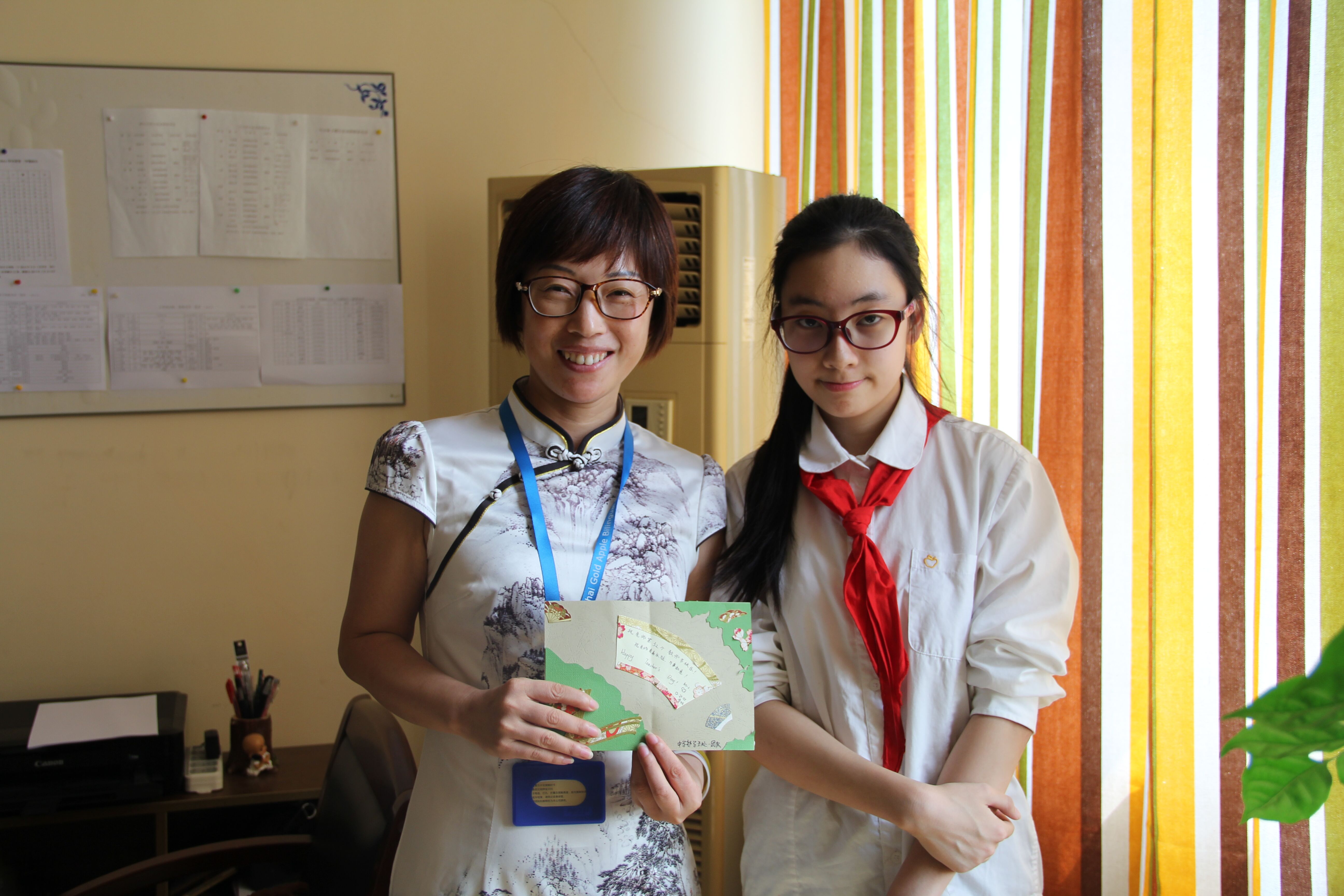 在第32个教师节来临之前,金苹果中学部的孩子们已经为在校的老师们献上了节日的惊喜——海报、黑板报、贺卡和绿色植物轮番上阵。