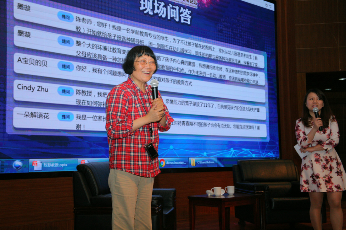 作为华东师范大学心理咨询中心特聘儿童青少年专家咨询师,陈默长期从事心理健康教学和儿童青少年心理咨询工作,积累近万余人次个案咨询记录。咨询中,解决了大量的疑难儿童青少年问题,为社会提供了专业的服务。接触过从幼儿、小学、中学、大学、职场青年大量疑难心理个案。这一次她为大家分享了大量教育方面的案例和心得,深受在场教育工作者和家长的好评。
