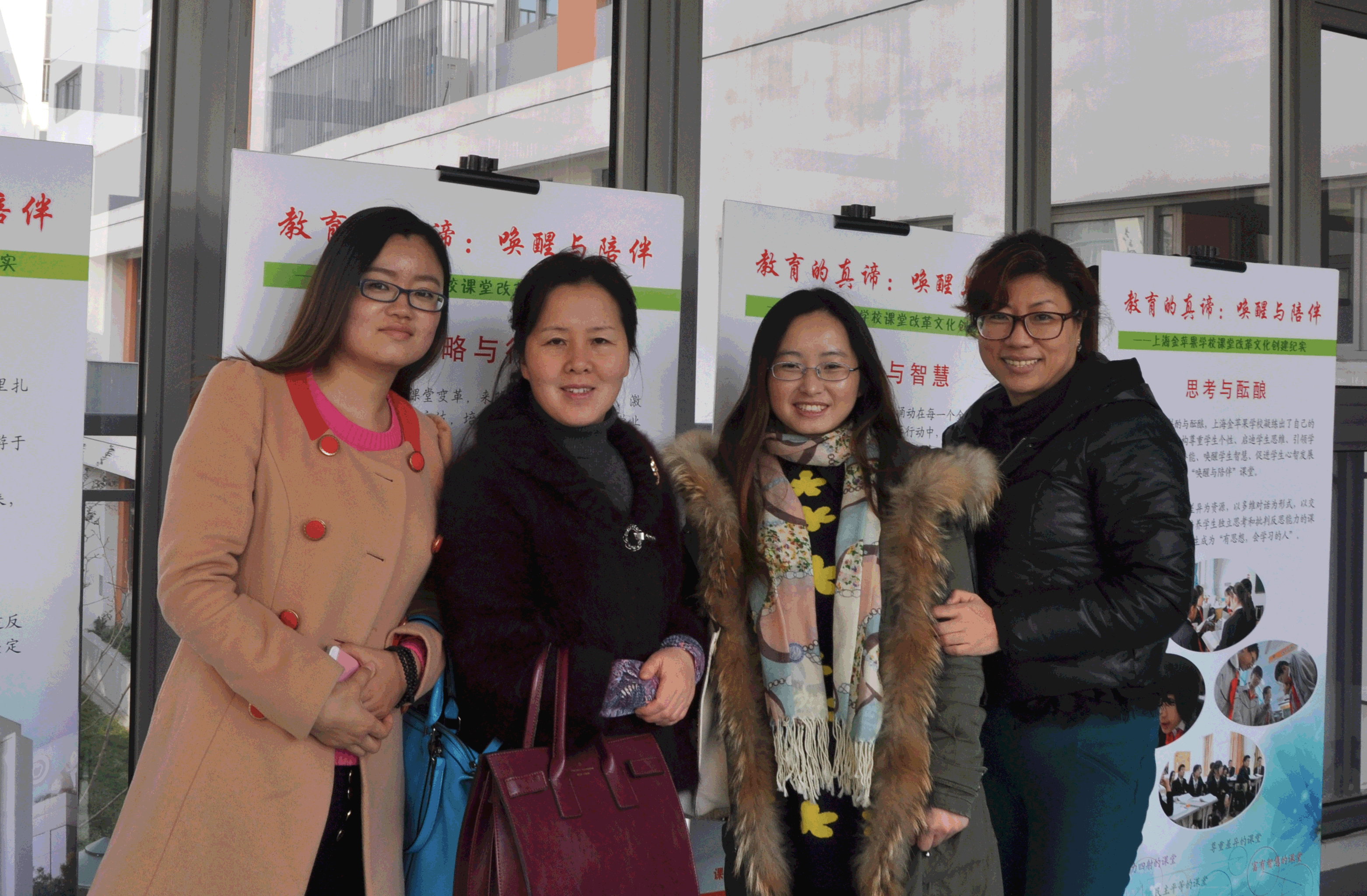 我校参加活动的老师在展板前合影