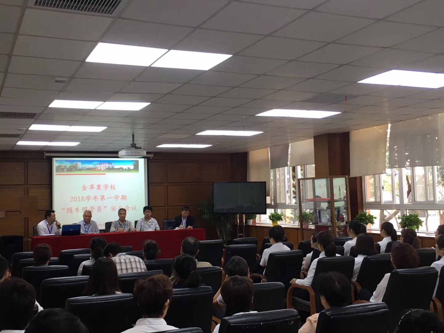 国庆长假结束第一天上班,金苹果学校就召开了“随车照管员”安全会议,对安全问题丝毫不放松,以预防为主,严抓不懈。