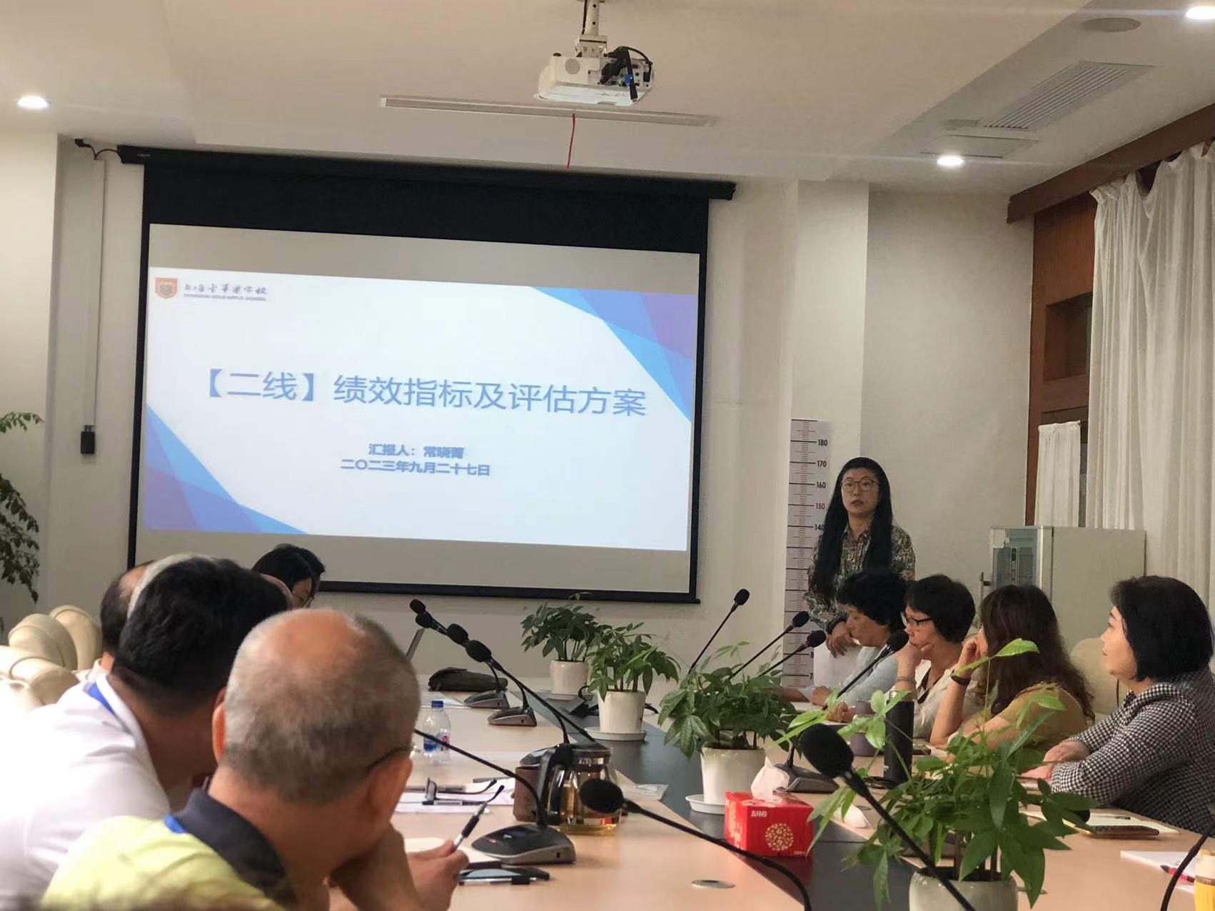 2023年9月27日,在第二会议进行了总校2023年9月度考核指标分析及人事指标分析会,校董会及全体中层干部参加了这次会议,重点对各个部门,特别是三个学部的教育教学和师资管理等,还包括教辅后勤进行考核指标的制定和评价标准,督导主任朱月平女士通过精准的指标分析各个学部的指标达成情况做了分析,通过明确指标来明确各个部门本学期努力的方向和对应绩效考核的评分。人事主任常晓菁对教辅和后勤部门的计划指标做了梳理,详细介绍分析了一个部门的制定标准模板,强调后面工作:“人人讲指标、人人有目标”,为大家更好的做好本职工作明确目标。